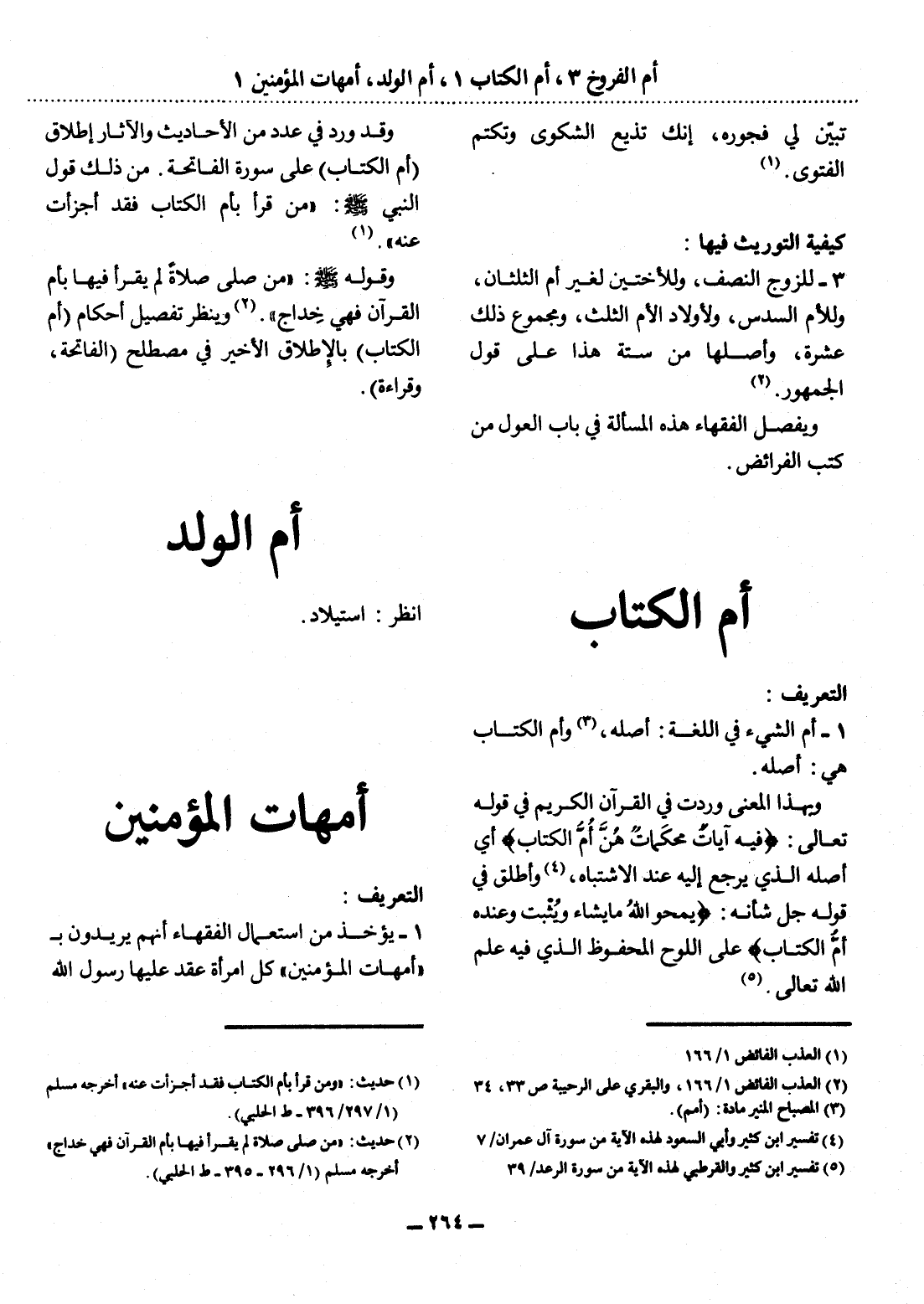 1 - أُمُّ الشَّيْءِ فِي اللُّغَةِ: أَصْلُهُ (3) ، وَأُمُّ الْكِتَابِ هِيَ أَصْلُهُ.