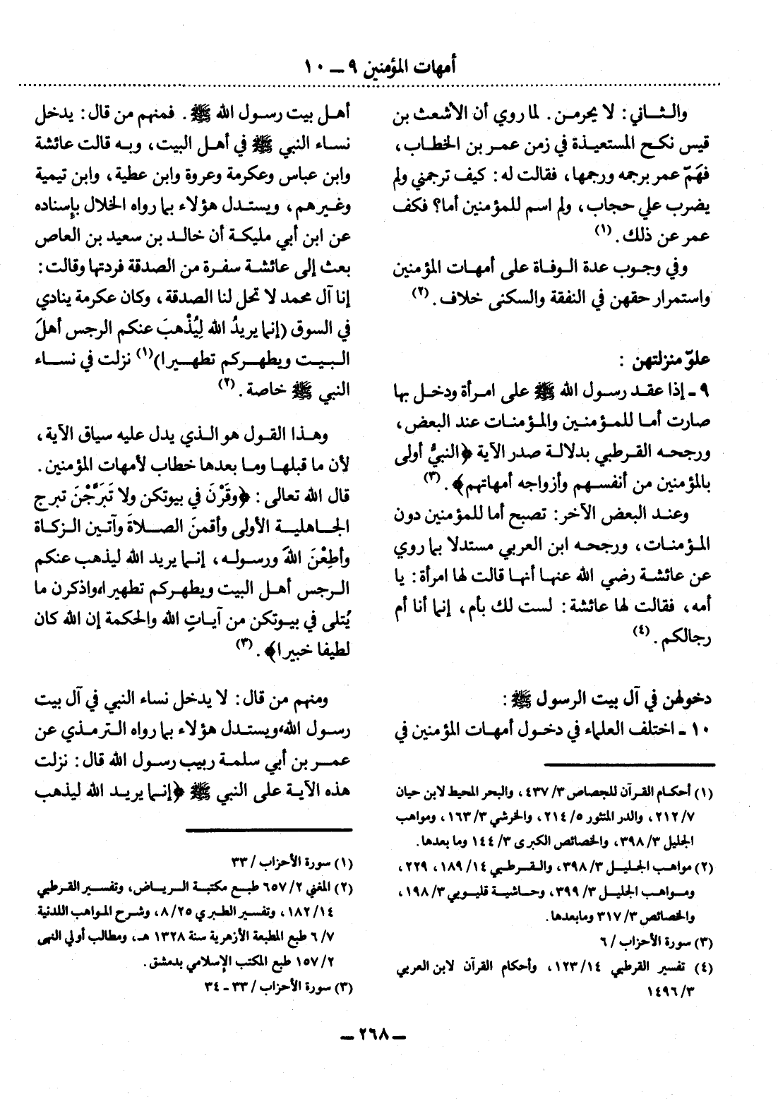 10 - اخْتَلَفَ الْعُلَمَاءُ فِي دُخُول أُمَّهَاتِ الْمُؤْمِنِينَ فِي