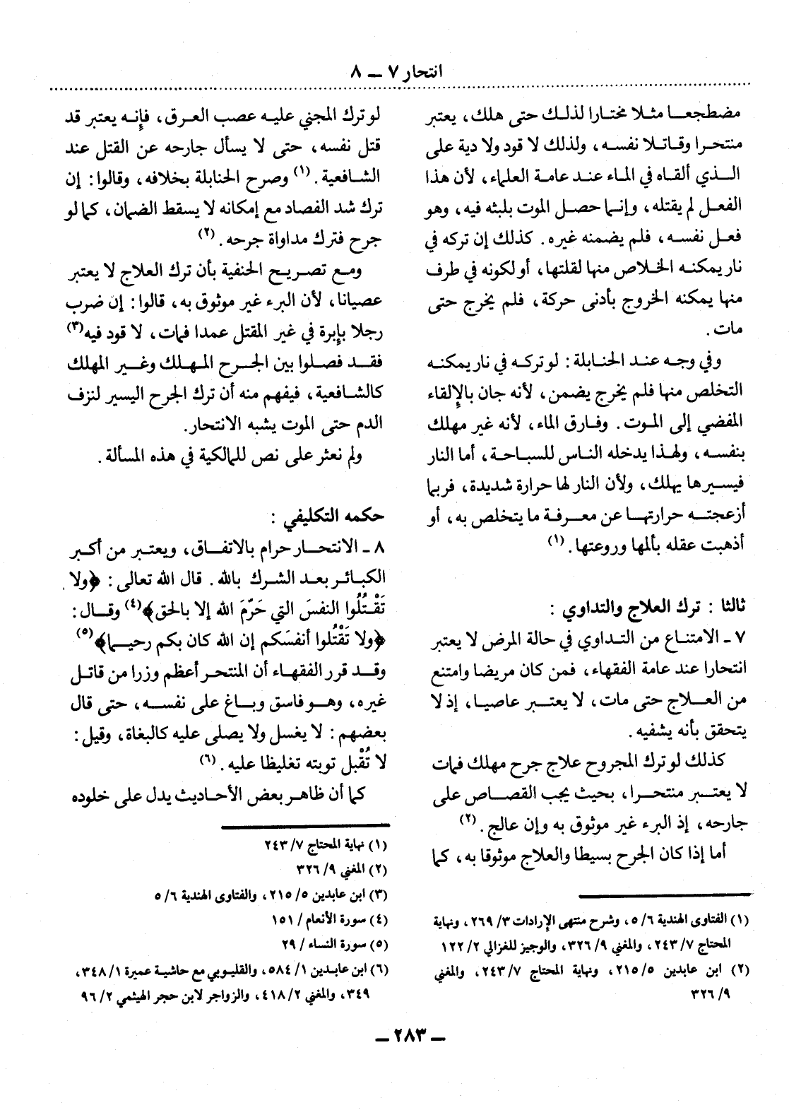 (6) ابن عابدين 1 / 584، والقليوبي مع حاشية عميرة 1 / 348، 349، والمغني 2 / 418، والزواجر لابن حجر الهيثمي 2 / 96