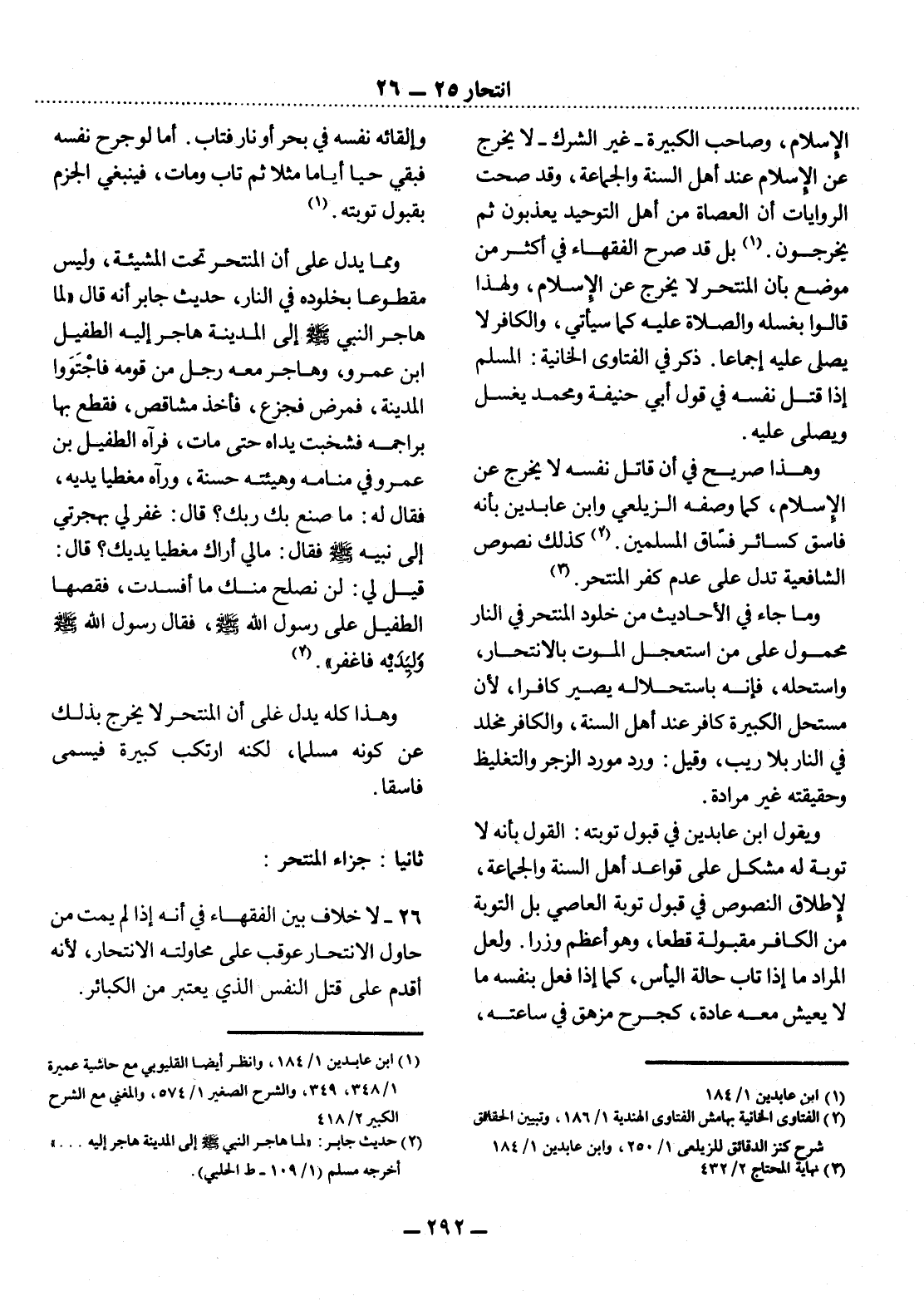 وَهَذَا صَرِيحٌ فِي أَنَّ قَاتِل نَفْسِهِ لاَ يَخْرُجُ عَنِ الإِْسْلاَمِ، كَمَا وَصَفَهُ الزَّيْلَعِيُّ وَابْنُ عَابِدِينَ بِأَنَّهُ فَاسِقٌ كَسَائِرِ فُسَّاقِ الْمُسْلِمِينَ (2) كَذَلِكَ نُصُوصُ الشَّافِعِيَّةِ تَدُل عَلَى عَدَمِ كُفْرِ الْمُنْتَحِرِ. (3)