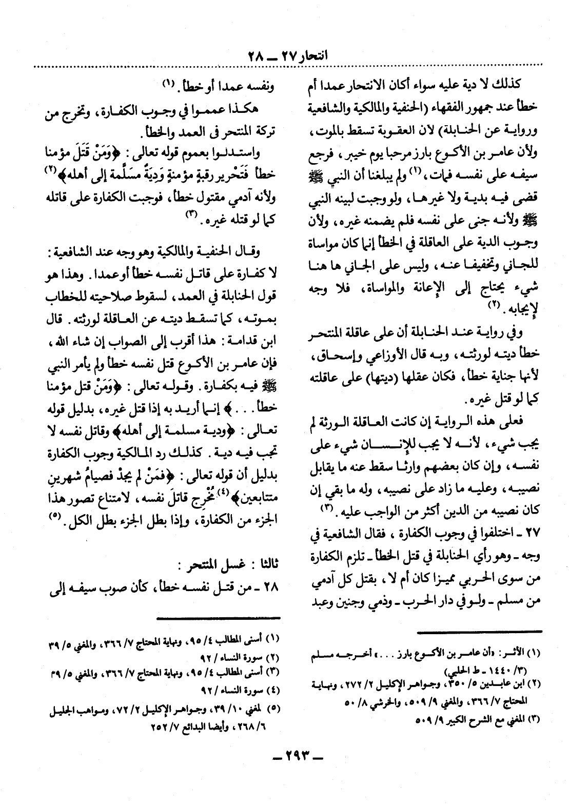 28 - مَنْ قَتَل نَفْسَهُ خَطَأً، كَأَنْ صَوَّبَ سَيْفَهُ إِلَى