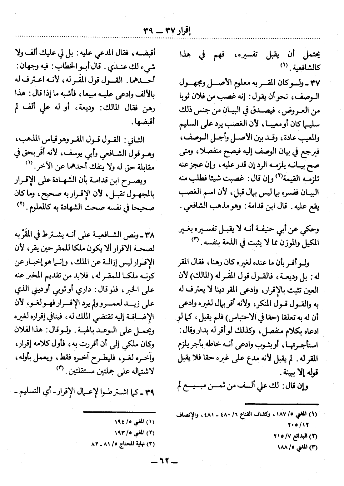 39 - كَمَا اشْتَرَطُوا لإِِعْمَال الإِْقْرَارِ - أَيِ التَّسْلِيمِ