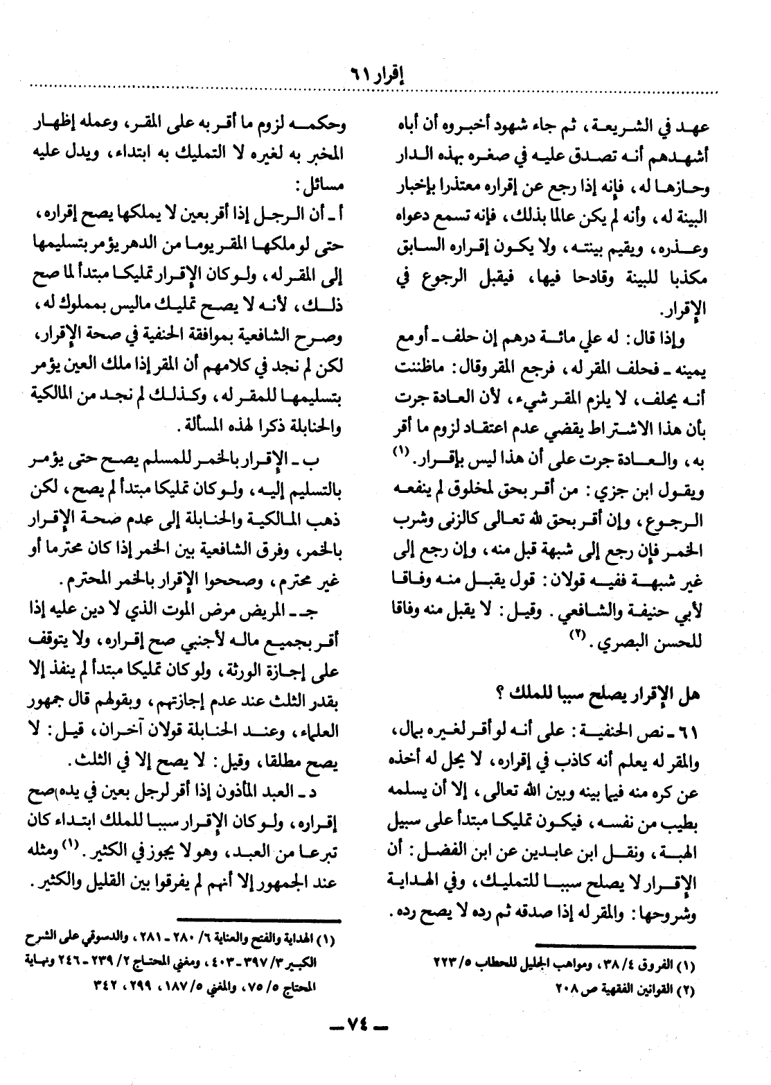 (1) الفروق 4 / 38، ومواهب الجليل للحطاب 5 / 223.