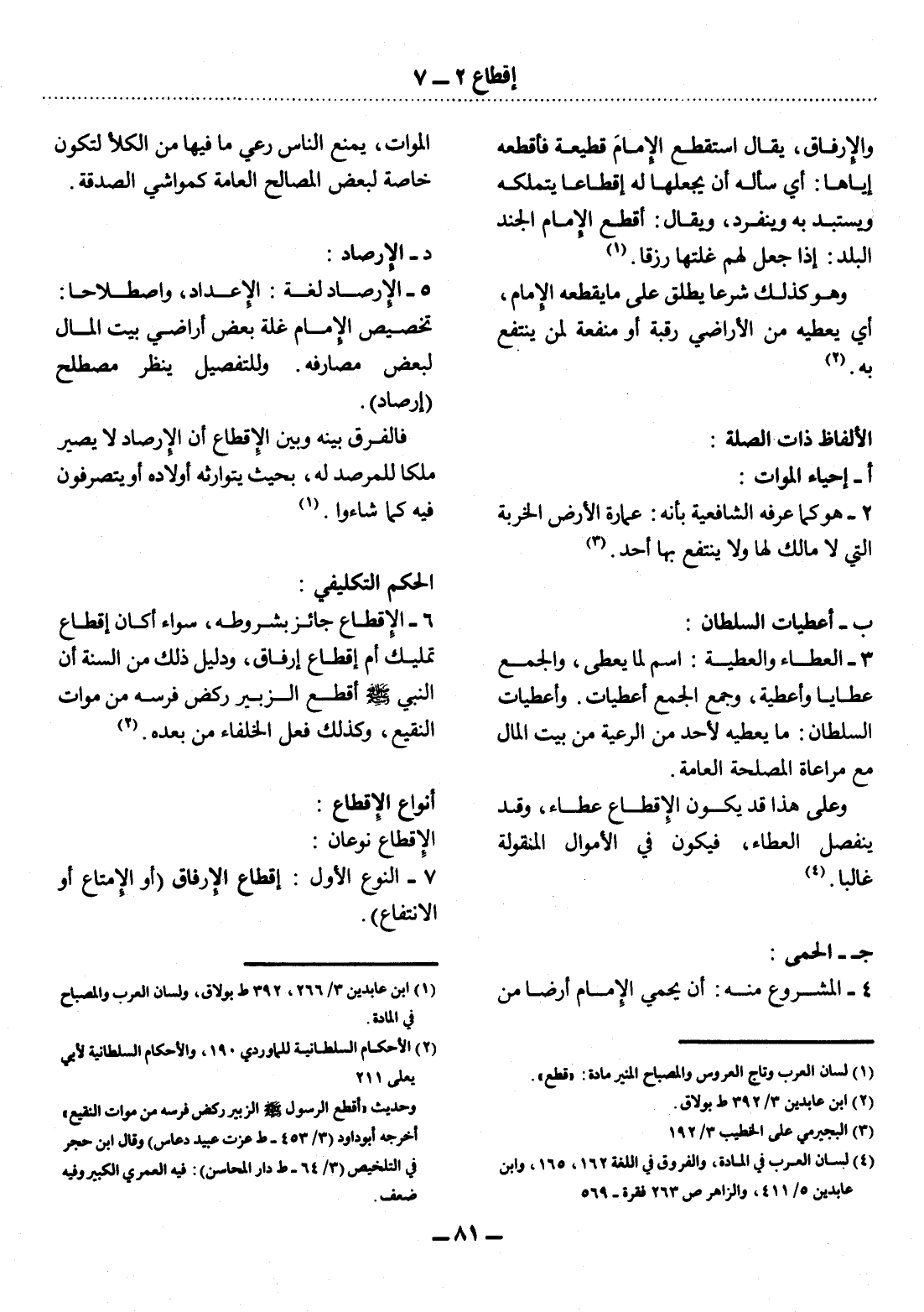 (4) لسان العرب في المادة، والفروق في اللغة 162، 165، وابن عابدين 5 / 411، والزاهر ص 263 فقرة - 569.