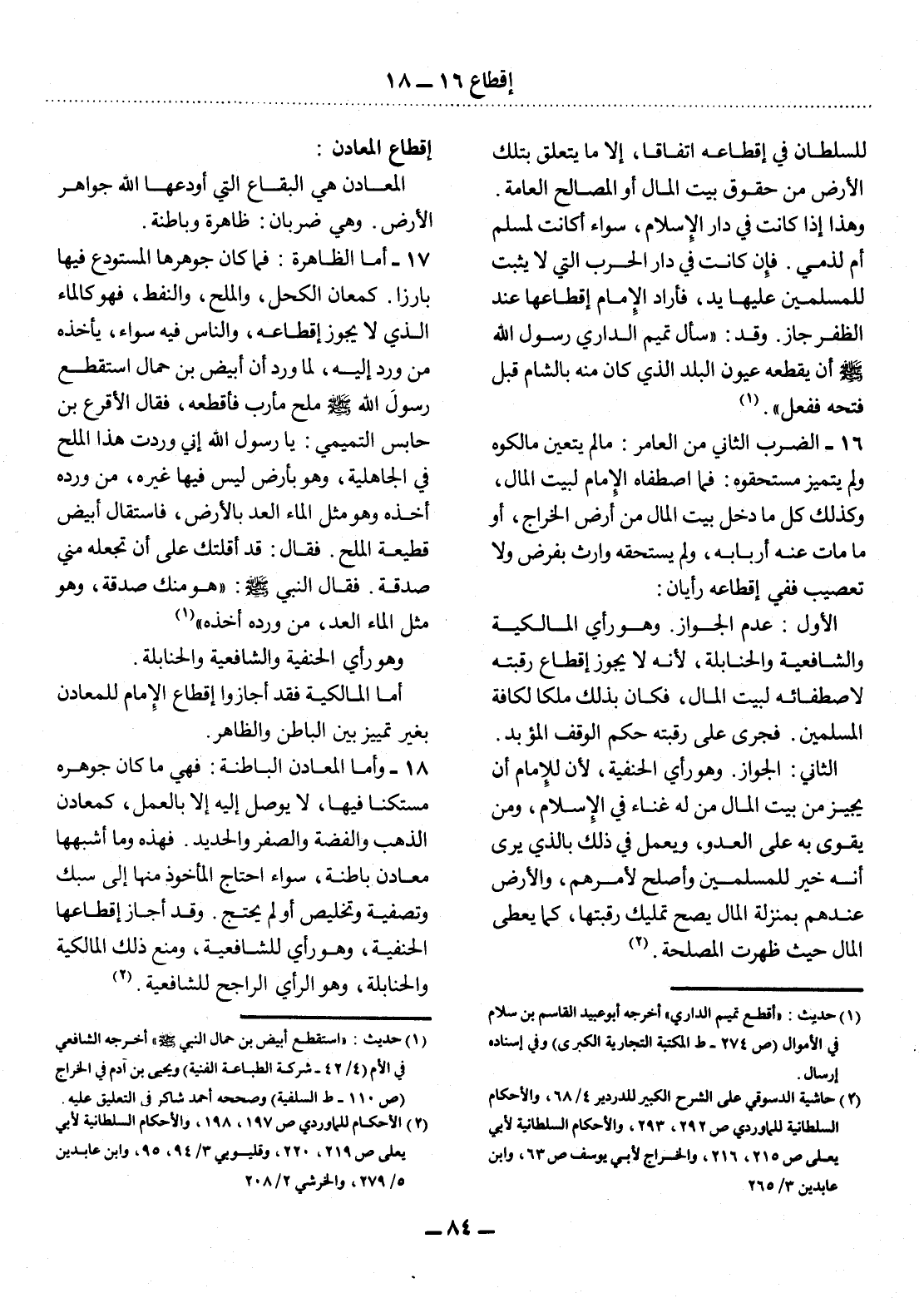 (2) حاشية الدسوقي على الشرح الكبير للدردير 4 / 68، والأحكام السلطانية للماوردي ص 292، 293، والأحكام السلطانية لأبي يعلى ص215، 216، والخراج لأبي يوسف ص 63، وابن عابدين 3 / 265.