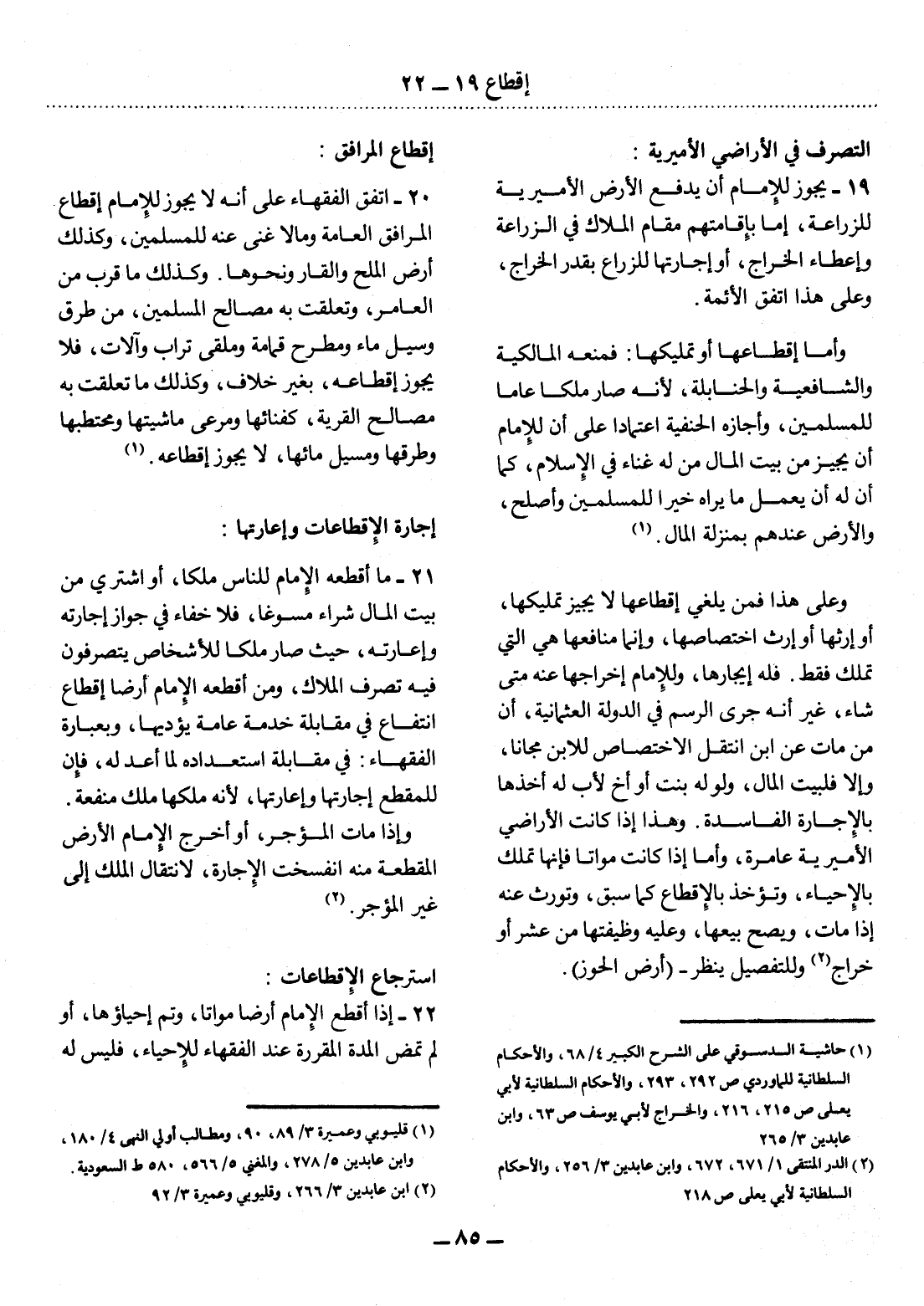 (2) الدر المنتقى 1 / 671، 672، وابن عابدين 3 / 256، والأحكام السلطانية لأبي يعلى ص218.