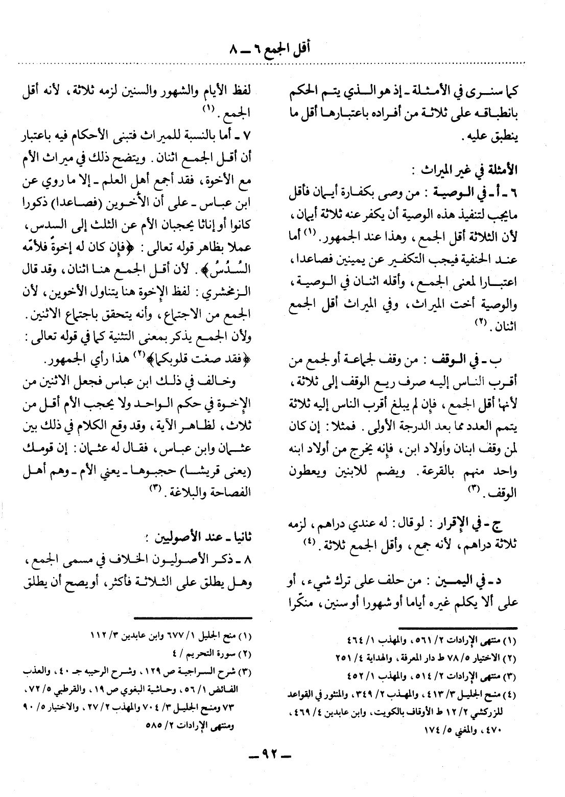 8 - ذَكَرَ الأُْصُولِيُّونَ الْخِلاَفَ فِي مُسَمَّى الْجَمْعِ، وَهَل يُطْلَقُ عَلَى الثَّلاَثَةِ فَأَكْثَرَ، أَوْ يَصِحُّ أَنْ يُطْلَقَ