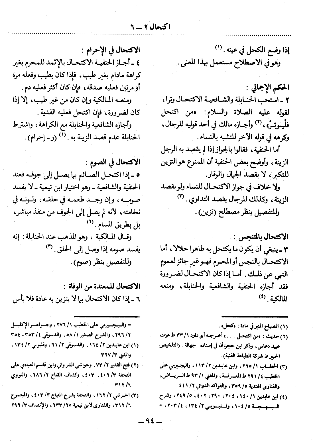 (4) ابن عابدين 1 / 140، 204، 290، 402، 5 / 249، وشرح البهجة 5 / 104، وقليوبي 2 / 134، 4 / 203، والبجيرمي على الخطيب1 / 276، وجواهر الإكليل 2 / 296، والشرح الصغير 1 / 58، والدسوقي 4 / 353 - 354.