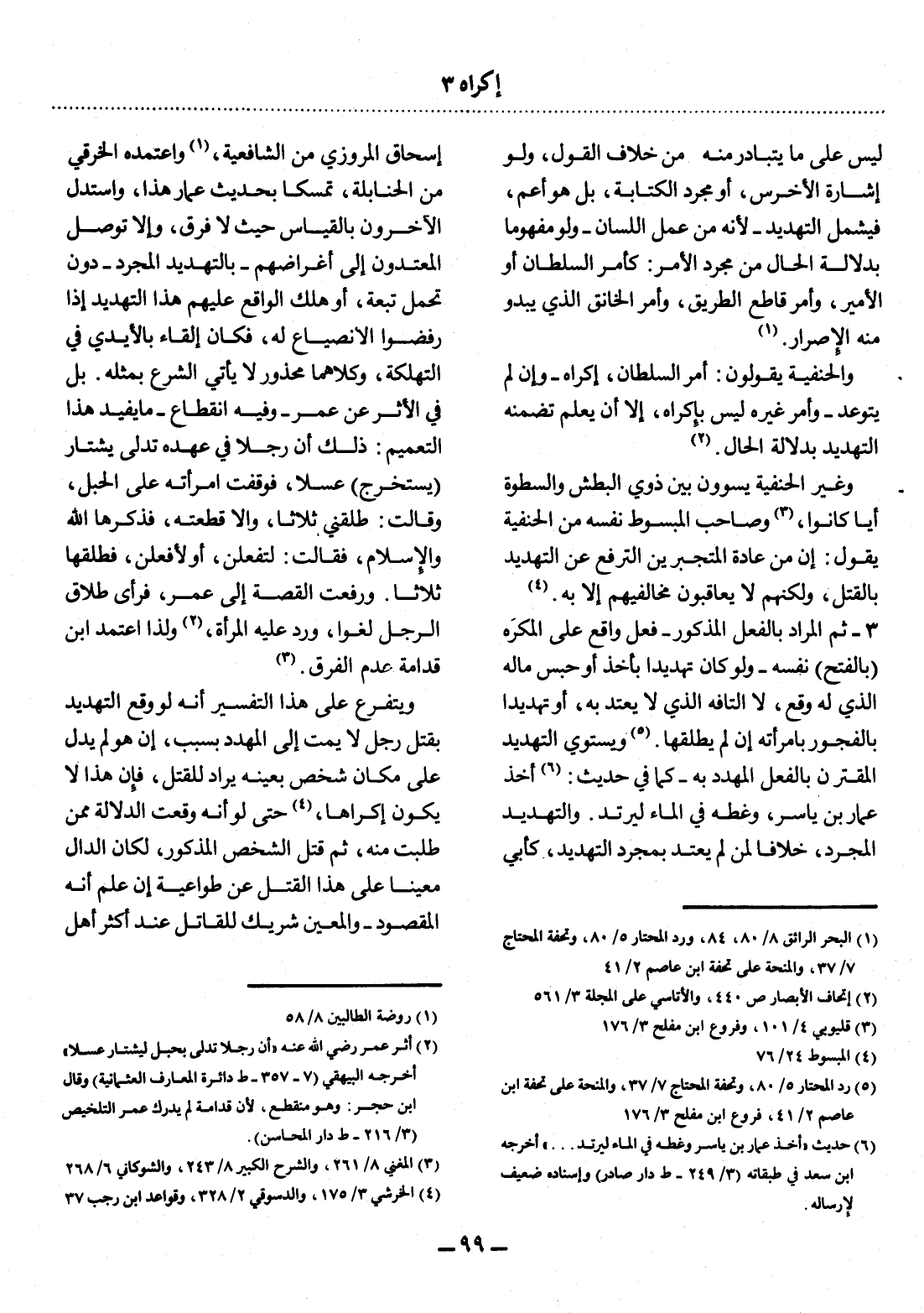 وَغَيْرُ الْحَنَفِيَّةِ يُسَوُّونَ بَيْنَ ذَوِي الْبَطْشِ وَالسَّطْوَةِ أَيًّا كَانُوا، (3) وَصَاحِبُ الْمَبْسُوطِ نَفْسُهُ مِنَ الْحَنَفِيَّةِ يَقُول: إِنَّ مِنْ عَادَةِ الْمُتَجَبِّرِينَ التَّرَفُّعَ عَنِ التَّهْدِيدِ بِالْقَتْل، وَلَكِنَّهُمْ لاَ يُعَاقِبُونَ مُخَالِفِيهِمْ إِلاَّ بِهِ. (4)