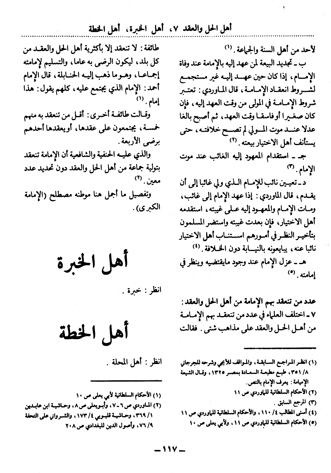 (5) الأحكام السلطانية للماوردي ص 11، ولأبي يعلى ص 10.