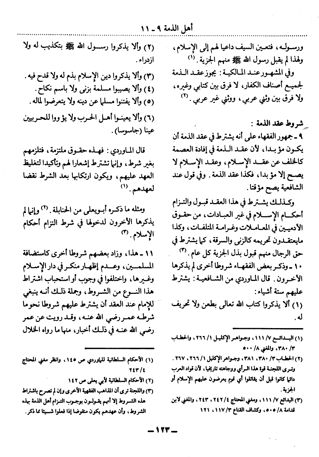 (2) الحطاب 3 / 380، 381، وجواهر الإكليل 1 / 266، 267. وترى اللجنة قوة هذا الرأي ووجاهته تاريخيا، لأن قواد العرب دائما كانوا قبل أن يقاتلوا أي قوم يعرضون عليهم الإسلام أو الجزية.