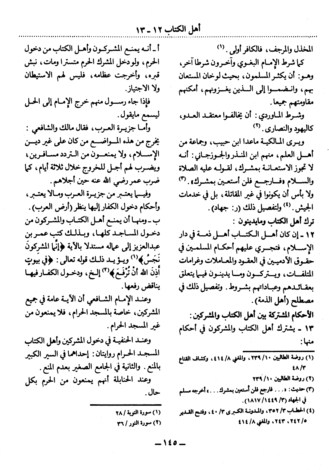13 - يَشْتَرِكُ أَهْل الْكِتَابِ وَالْمُشْرِكُونَ فِي أَحْكَامٍ مِنْهَا: