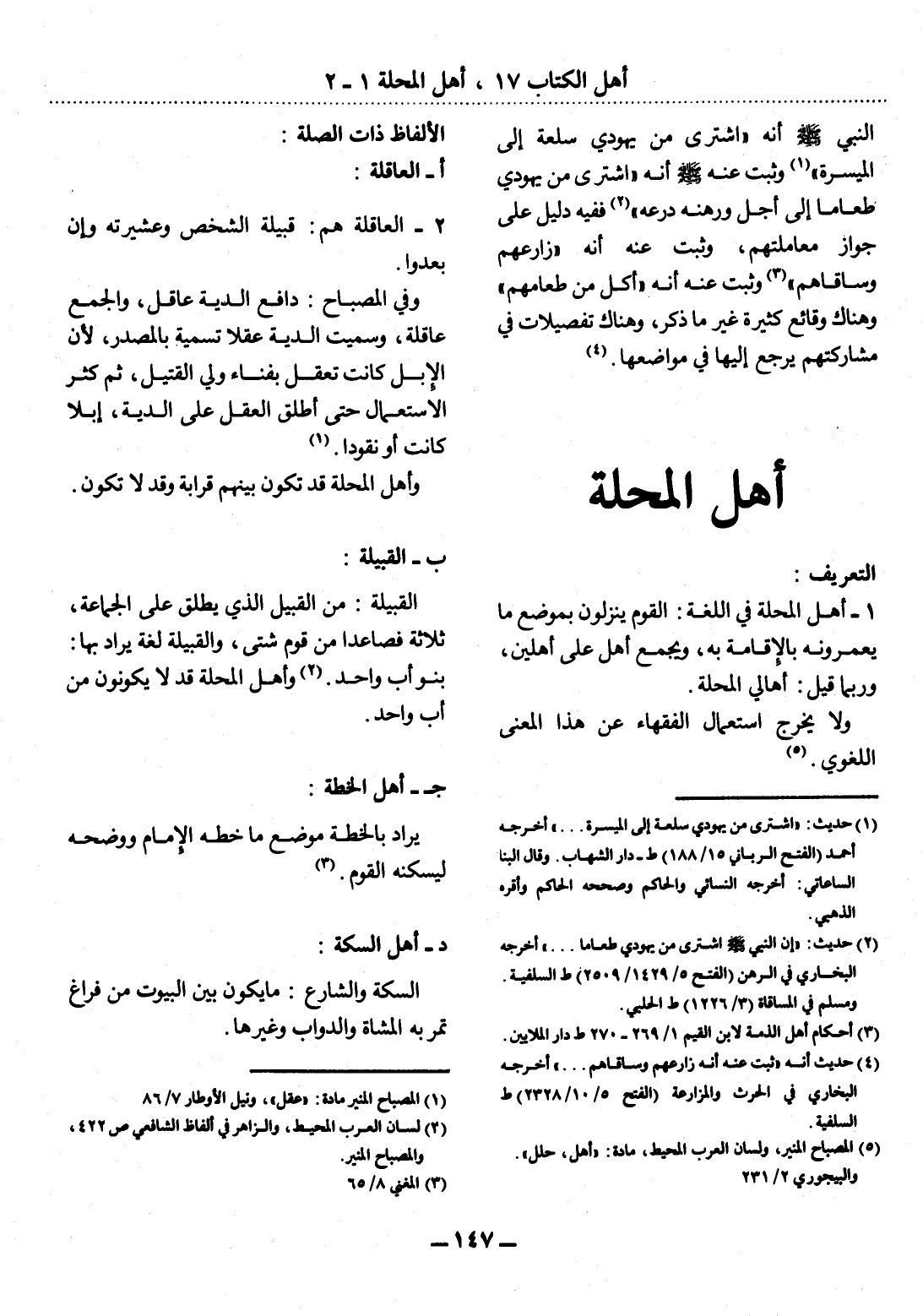 (5) المصباح المنير، ولسان العرب المحيط، مادة: " أهل، حلل ". والبيجوري 2 / 231.