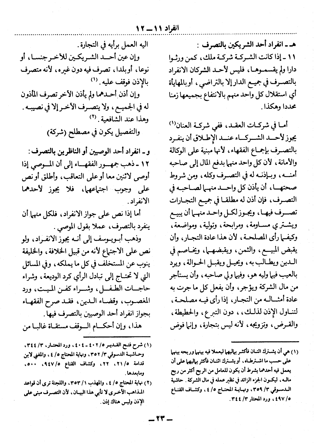 (2) نهاية المحتاج 5 / 4، والمهذب 1 / 353، واللجنة ترى أن قواعد المذاهب الأخرى لا تأبى هذا البيان، لأن التصرف مبني على الإذن وليس هناك إذن