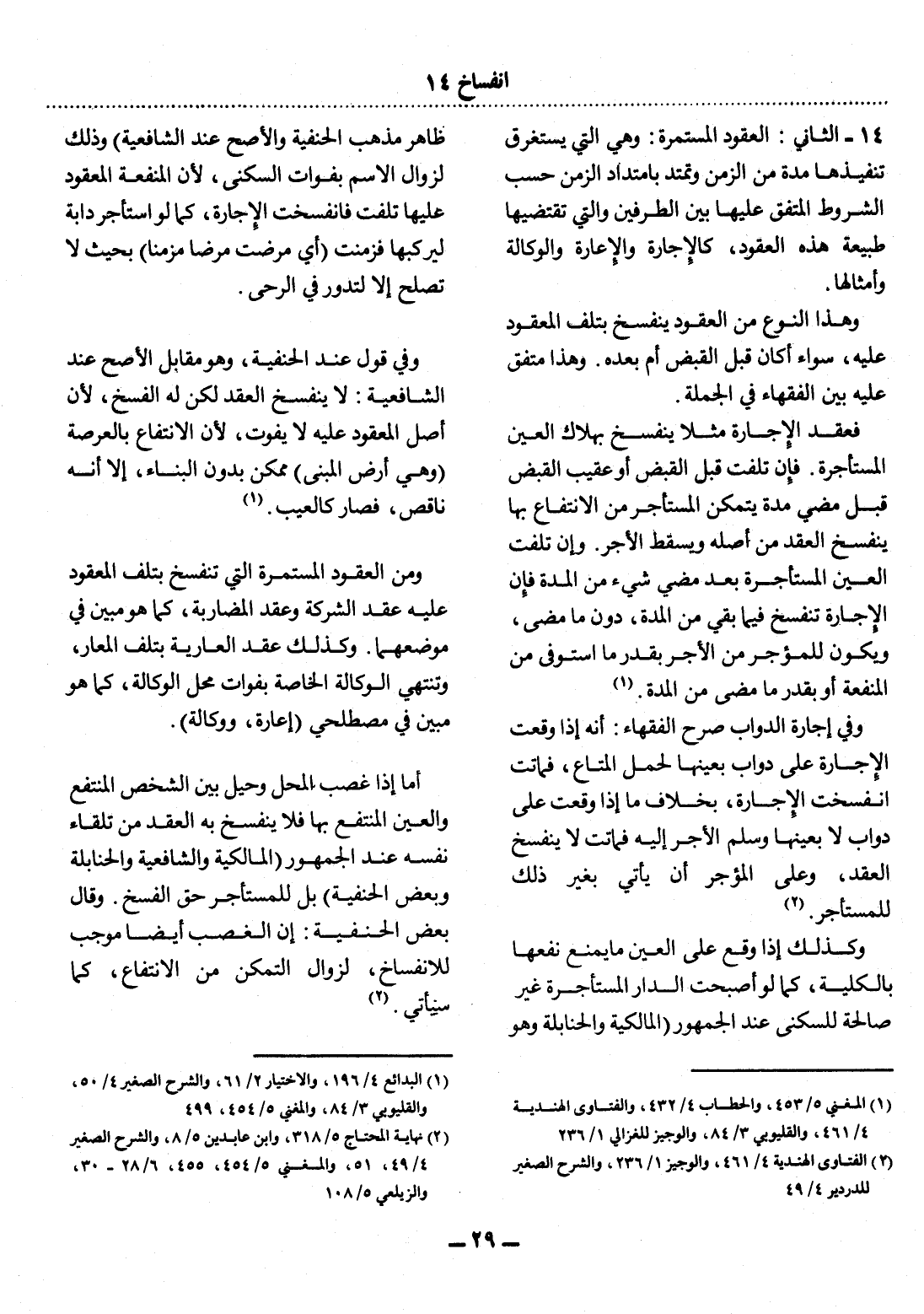 14 - الثَّانِي: الْعُقُودُ الْمُسْتَمِرَّةُ: وَهِيَ الَّتِي يَسْتَغْرِقُ تَنْفِيذُهَا مُدَّةً مِنَ الزَّمَنِ وَتَمْتَدُّ بِامْتِدَادِ الزَّمَنِ حَسَبَ الشُّرُوطِ الْمُتَّفَقِ عَلَيْهَا بَيْنَ الطَّرَفَيْنِ وَالَّتِي تَقْتَضِيهَا طَبِيعَةُ هَذِهِ الْعُقُودِ، كَالإِْجَارَةِ وَالإِْعَارَةِ وَالْوَكَالَةِ وَأَمْثَالِهَا.