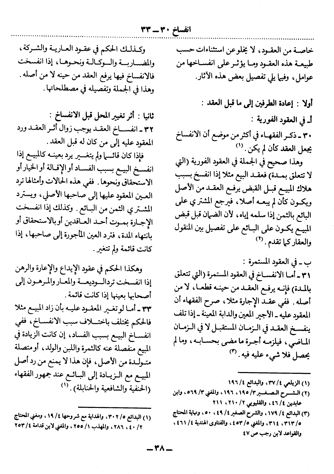 32 - انْفِسَاخُ الْعَقْدِ يُوجِبُ زَوَال أَثَرِ الْعَقْدِ وَرَدَّ الْمَعْقُودِ عَلَيْهِ إِلَى مَنْ كَانَ لَهُ قَبْل الْعَقْدِ.