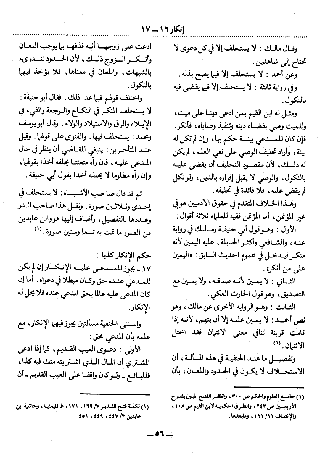 17 - يَجُوزُ لِلْمُدَّعَى عَلَيْهِ الإِْنْكَارُ إِنْ لَمْ يَكُنْ لِلْمُدَّعِي عِنْدَهُ حَقٌّ وَكَانَ مُبْطِلاً فِي دَعْوَاهُ. أَمَّا إِنْ كَانَ الْمُدَّعَى عَلَيْهِ عَالِمًا بِحَقِّ الْمُدَّعِي عِنْدَهُ فَلاَ يَحِل لَهُ الإِْنْكَارُ.