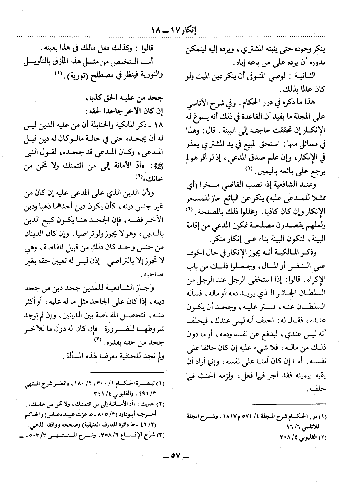 (1) درر الحكام شرح المجلة 4 / 574 م 1817، وشرح المجلة للآتاسي 6 / 96.