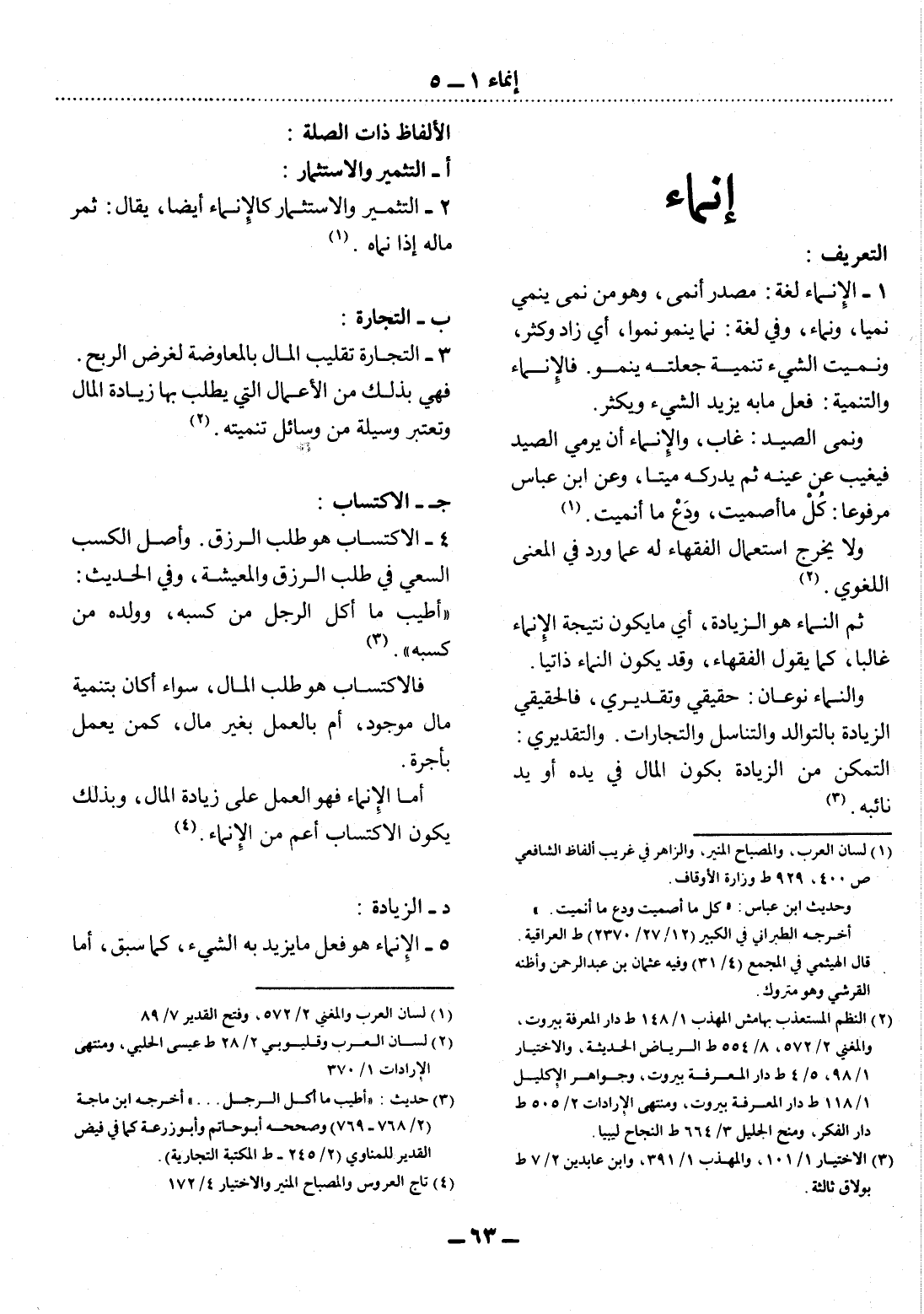 5 - الإِْنْمَاءُ هُوَ فِعْل مَا يَزِيدُ بِهِ الشَّيْءُ، كَمَا سَبَقَ، أَمَّا