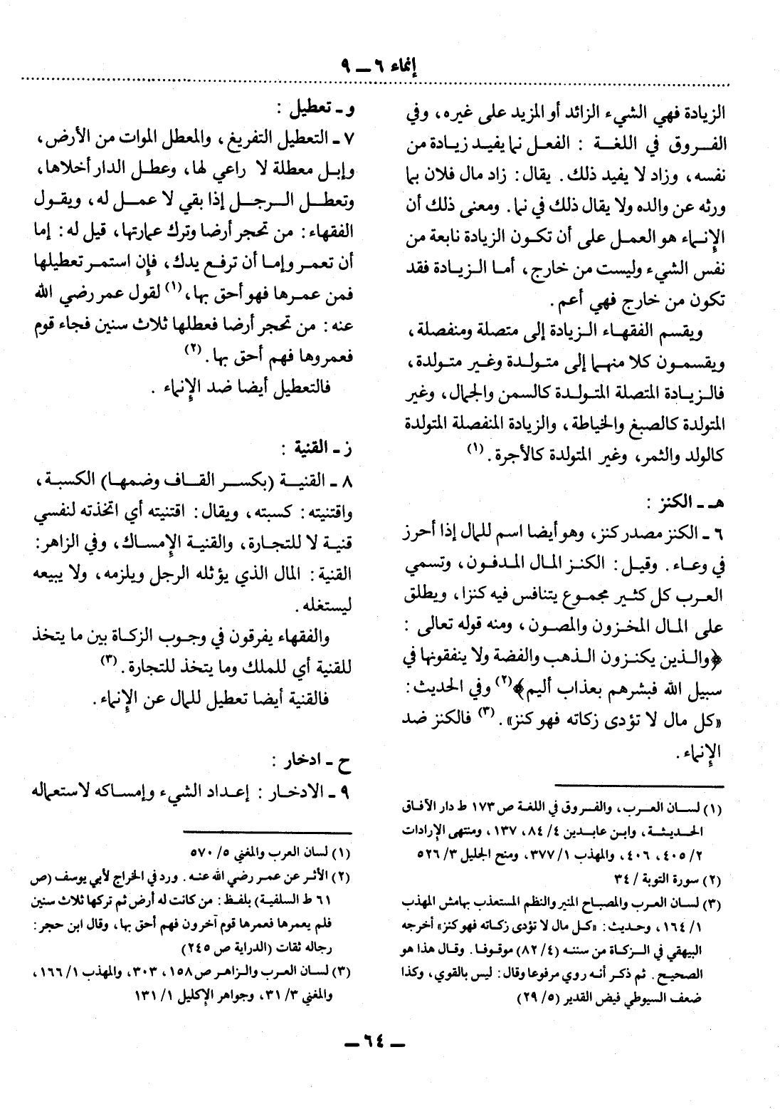 (3) لسان العرب والمصباح المنير والنظم المستعذب بهامش المهذب 1 / 164، وحديث: " كل مال لا تؤدى زكاته فهو كنز " أخرجه البيهقي في الزكاة من سننه (4 / 82) موقوفا. وقال هذا هو الصحيح. ثم ذكر أنه روي مرفوعا وقال: ليس بالقوي، وكذا ضعف السيوطي فيض القدير (5 / 29) .