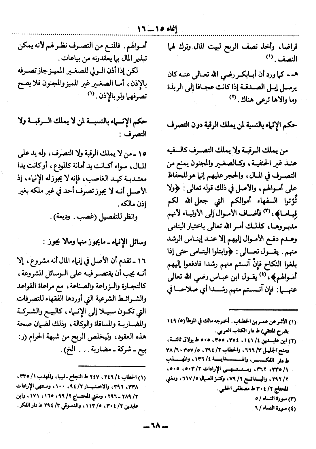 (2) ابن عابدين 4 / 141، 354، 355، 505، ط بولاق ثالثة، ومنح الجليل 3 / 666، والحطاب 2 / 294، 5 / 357 ط دار الفكر، والهداية 4 / 136، والحطاب 6 / 38، والمهذب 1 / 335، 362، ومنتهى الإرادات 2 / 503، 505، 2 / 292، والبدائع 6 / 79، وكنز العمال 5 / 617، ومغني المحتاج 2 / 304 ط مصطفى الحلبي.