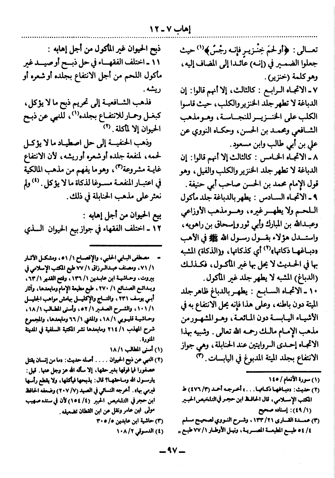 (2) حديث: " دباغها ذكاتها. . . . " أخرجه أحمد (3 / 476) ط المكتب الإسلامي، قال الحافظ ابن حجر في تلخيص الحبير (1 / 49) : إسناده صحيح.
