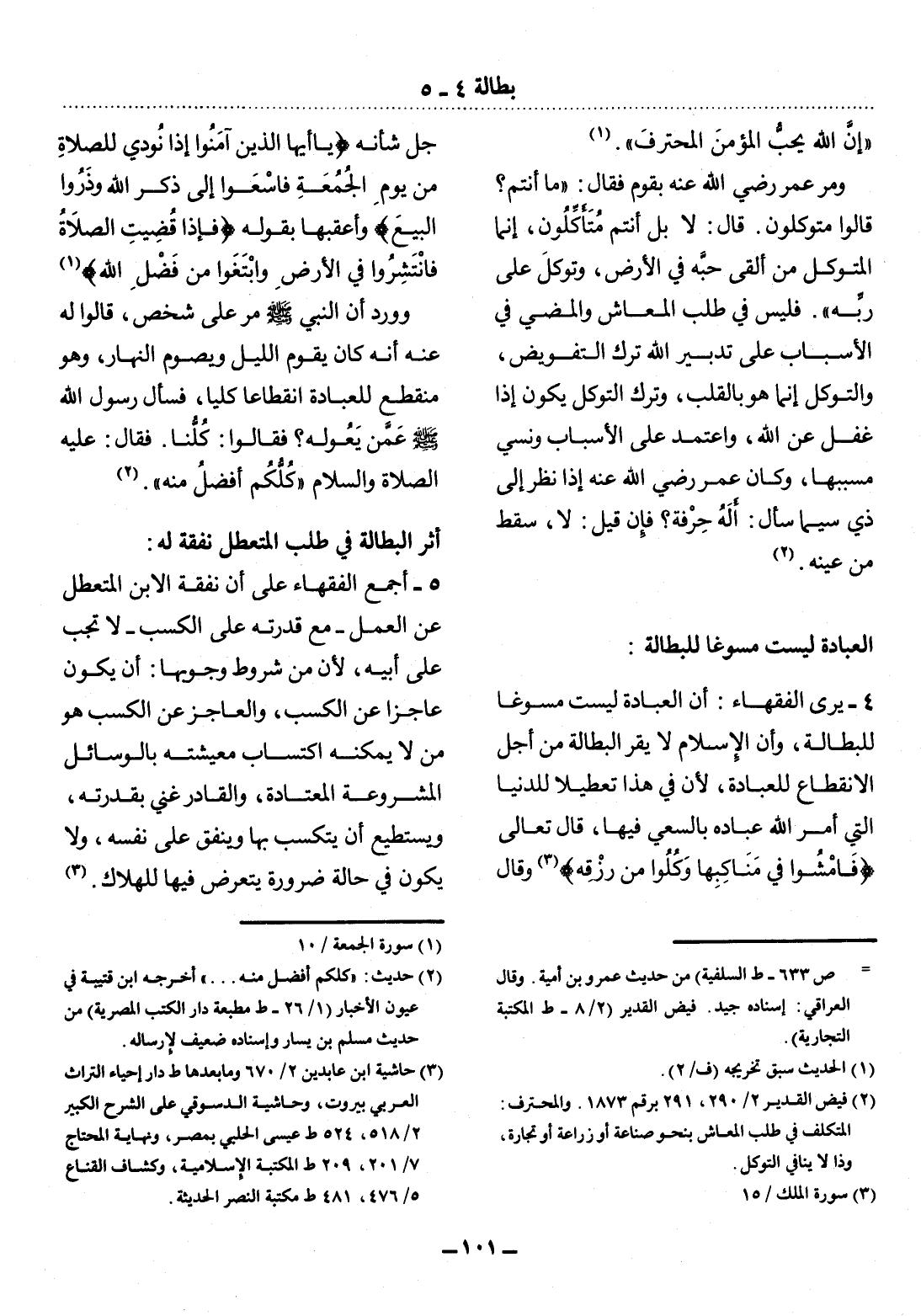 الْعِبَادَةُ لَيْسَتْ مُسَوِّغًا لِلْبَطَالَةِ: