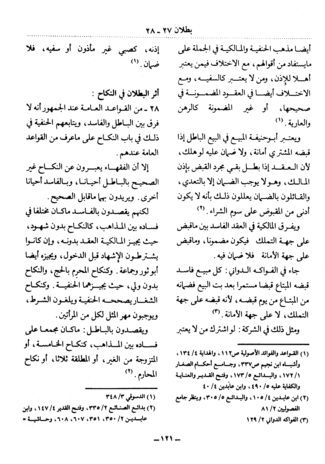 (1) القواعد والفوائد الأصولية ص 112، والهداية 4 / 134، وأشباه ابن نجيم ص 337، وجامع أحكام الصغار 1 / 172، والبدائع 5 / 173، وفتح القدير والعناية والكفاية عليه 5 / 490، وابن عابدين 4 / 40.