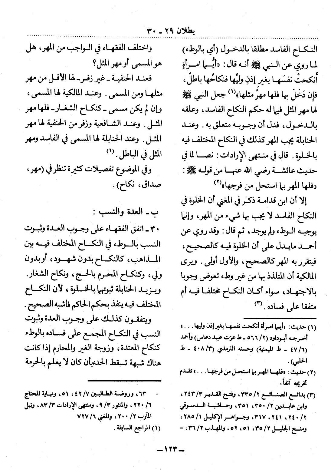 ب - الْعِدَّةُ وَالنَّسَبُ: