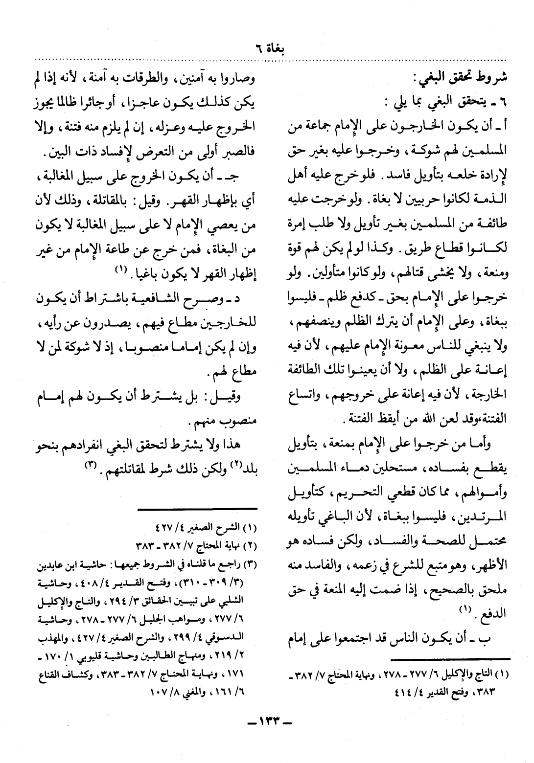 (1) التاج والإكليل 6 / 277 - 278، ونهاية المحتاج 7 / 382ـ 383، وفتح القدير 4 / 414.