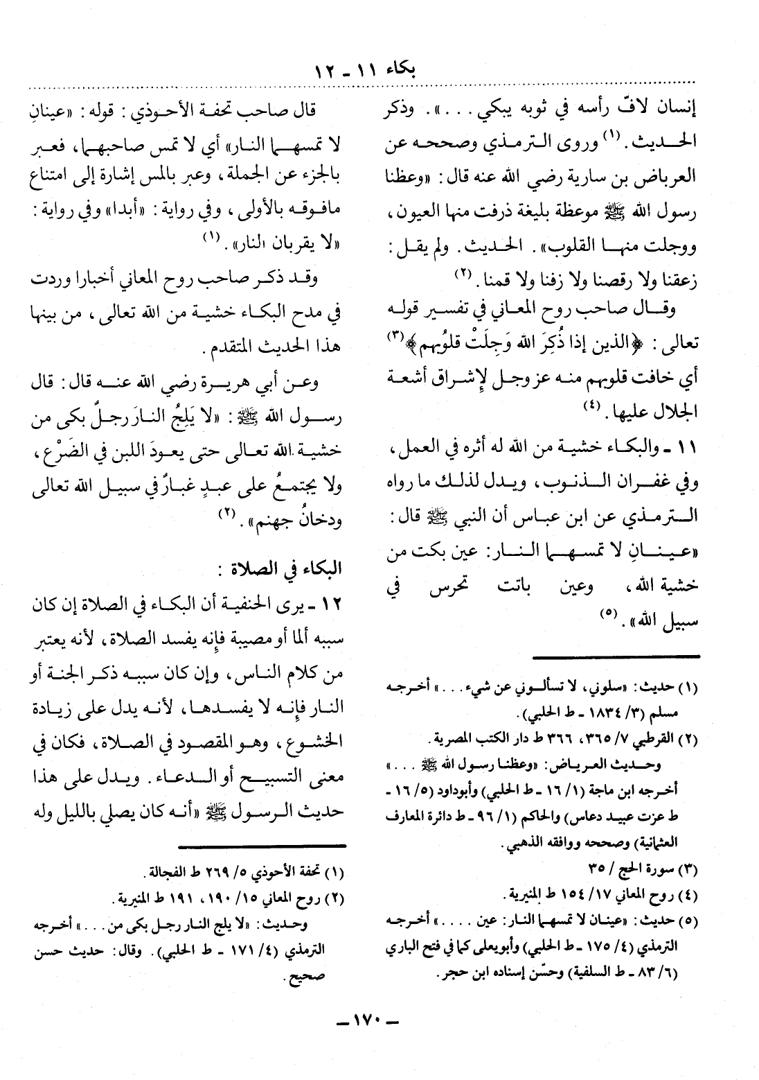 (2) روح المعاني 15 / 190، 191 ط المنيرية. وحديث: " لا يلج النار رجل بكى من. . " أخرجه الترمذي (4 / 171ـ ط الحلبي) . وقال: حديث حسن صحيح.