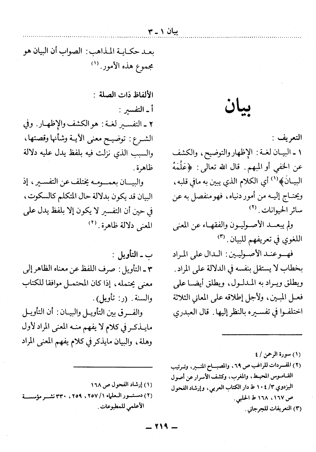 وَلَمْ يَبْعُدِ الأُْصُولِيُّونَ وَالْفُقَهَاءُ عَنِ الْمَعْنَى اللُّغَوِيِّ فِي تَعْرِيفِهِمْ لِلْبَيَانِ. (3)