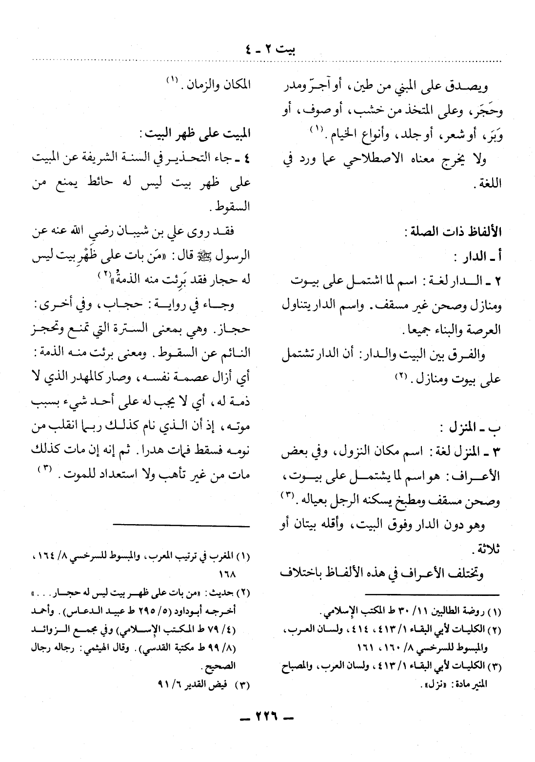 (2) الكليات لأبي البقاء 1 / 413، 414، ولسان العرب، والمبسوط للسرخسي 8 / 160، 161.