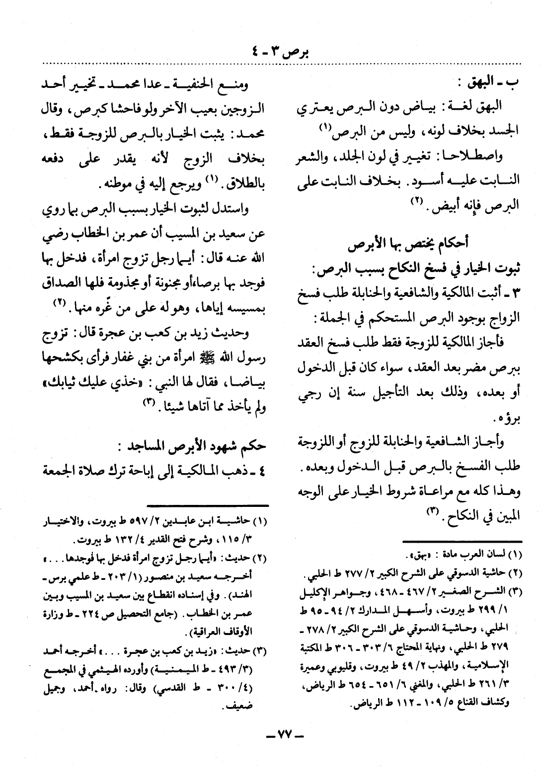 ثُبُوتُ الْخِيَارِ فِي فَسْخِ النِّكَاحِ بِسَبَبِ الْبَرَصِ: