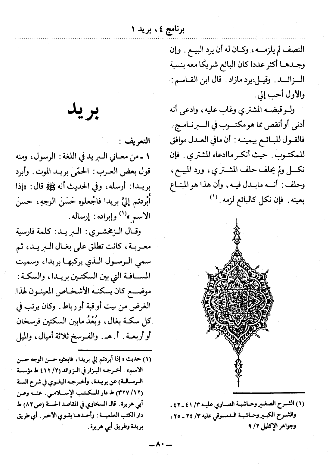 وَقَال الزَّمَخْشَرِيُّ: الْبَرِيدُ: كَلِمَةٌ فَارِسِيَّةٌ مُعَرَّبَةٌ، كَانَتْ تُطْلَقُ عَلَى بِغَال الْبَرِيدِ، ثُمَّ سُمِّيَ الرَّسُول الَّذِي يَرْكَبُهَا بَرِيدًا، وَسُمِّيَتِ الْمَسَافَةُ الَّتِي بَيْنَ السِّكَّتَيْنِ بَرِيدًا، وَالسِّكَّةُ: مَوْضِعٌ كَانَ يَسْكُنُهُ الأَْشْخَاصُ الْمُعَيَّنُونَ لِهَذَا الْغَرَضِ مِنْ بَيْتٍ أَوْ قُبَّةٍ أَوْ رِبَاطٍ. وَكَانَ يُرَتَّبُ فِي كُل سِكَّةٍ بِغَالٌ، وَبُعْدُ مَا بَيْنَ السِّكَّتَيْنِ فَرْسَخَانِ أَوْ أَرْبَعَةٌ. أ. هـ. وَالْفَرْسَخُ ثَلاَثَةُ أَمْيَالٍ، وَالْمِيل