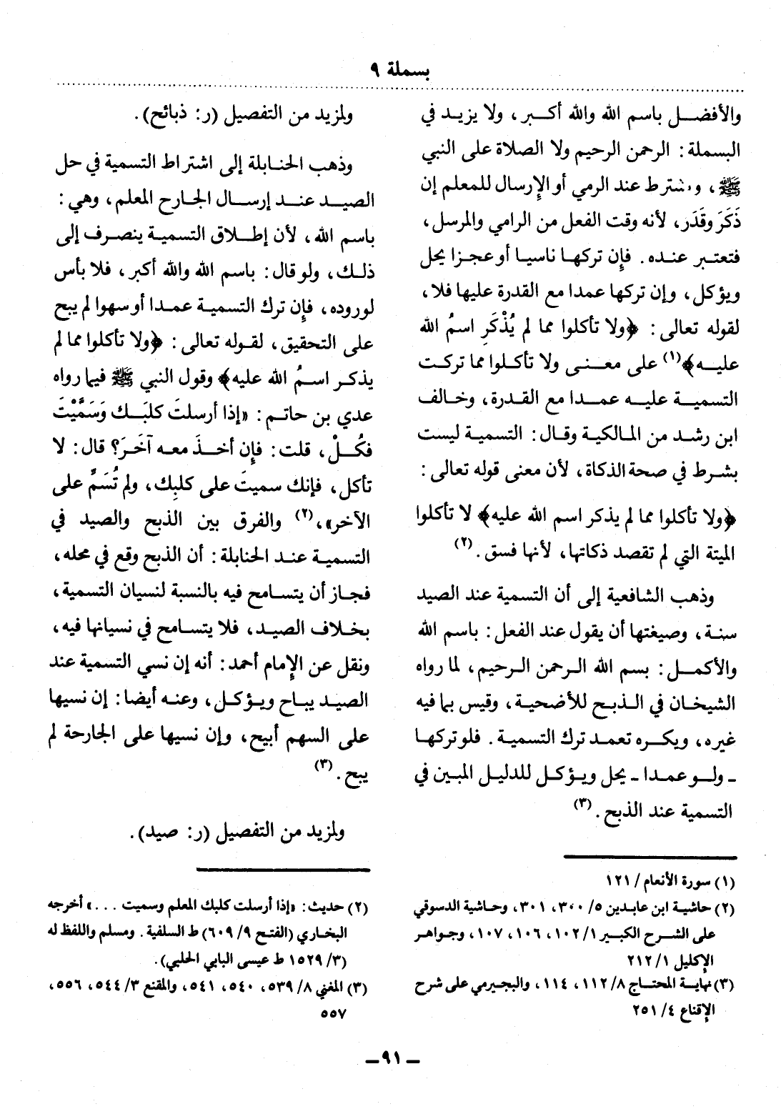 (1) حديث: " إذا أرسلت كلبك المعلم وسميت. . . " أخرجه البخاري (الفتح 9 / 609) ط السلفية. ومسلم واللفظ له (3 / 1529ط عيسى البابى الحلبي) .