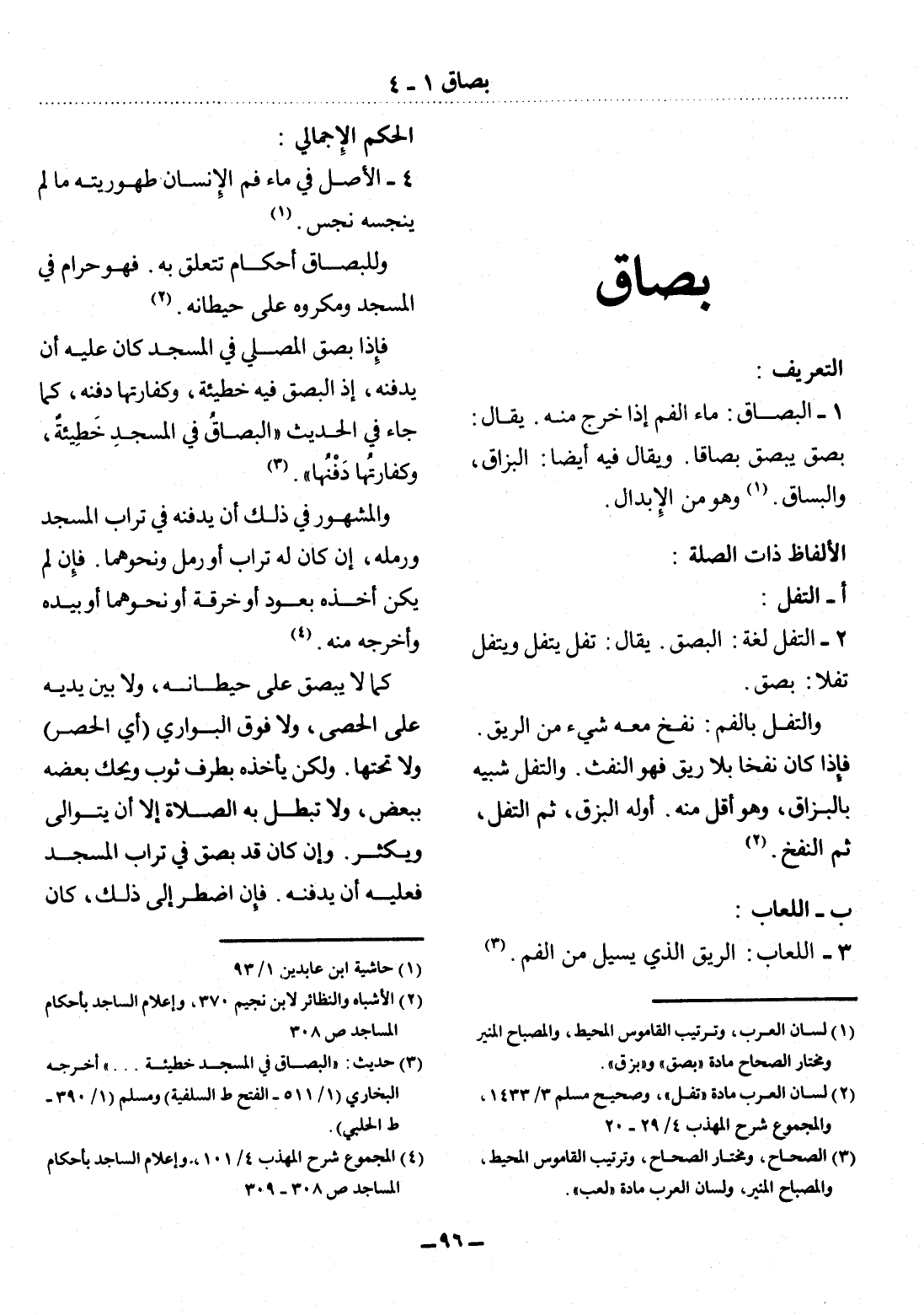 (1) لسان العرب، وترتيب القاموس المحيط، والمصباح المنير ومختار الصحاح مادة " بصق " و " بزق ".