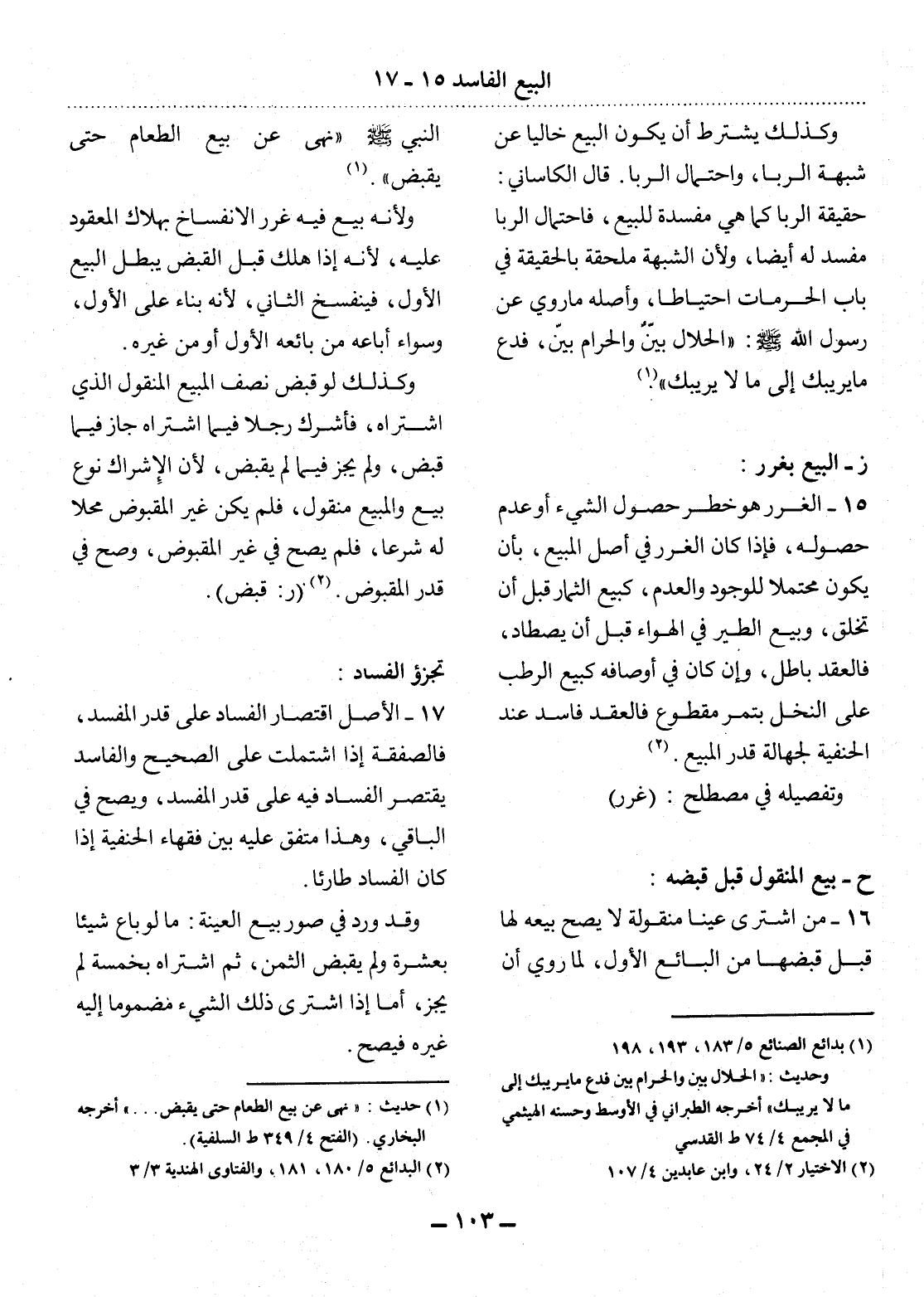 (1) بدائع الصنائع 5 / 183، 193، 198. وحديث: " الحلال بين والحرام بين، فدع ما يريبك إلى ما لا يريبك " أخرجه الطبراني في الأوسط وحسنه الهيثمي في المجمع 4 / 74 ط القدسي