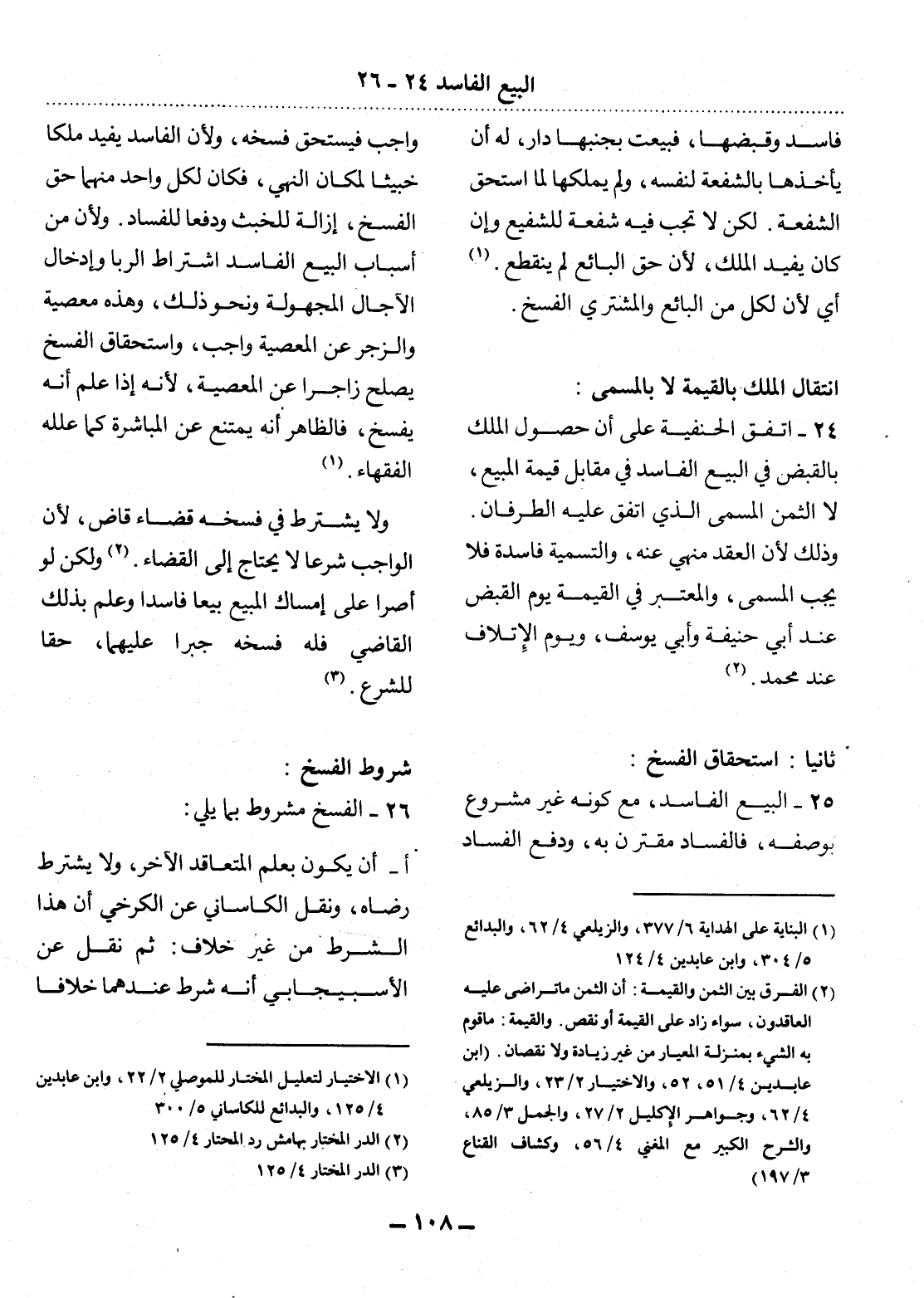 25 - الْبَيْعُ الْفَاسِدُ، مَعَ كَوْنِهِ غَيْرَ مَشْرُوعٍ بِوَصْفِهِ، فَالْفَسَادُ مُقْتَرِنٌ بِهِ، وَدَفْعُ الْفَسَادِ