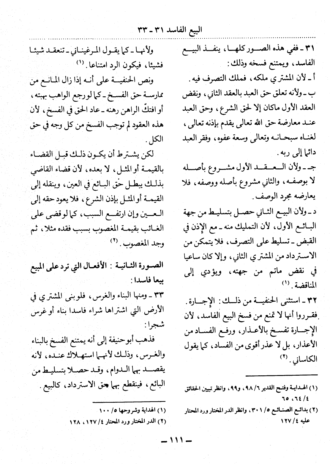 31 - فَفِي هَذِهِ الصُّوَرِ كُلِّهَا، يَنْفُذُ الْبَيْعُ الْفَاسِدُ، وَيَمْتَنِعُ فَسْخُهُ وَذَلِكَ: