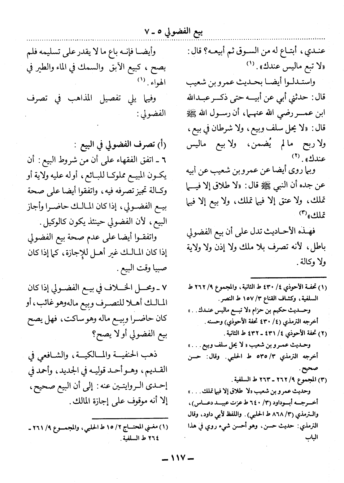 (1) تحفة الأحوذي 4 / 430 ط الثانية، والمجموع 9 / 262 ط السلفية، وكشاف القناع 3 / 157 ط النصر. وحديث حكيم بن حزام " لا تبع ما ليس عندك. . . . " أخرجه الترمذي (4 / 430 تحفة الأحوذي) وحسنه.