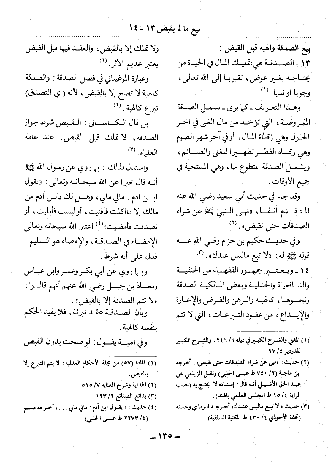(1) المادة (57) من مجلة الأحكام العدلية: لا يتم التبرع إلا بالقبض.