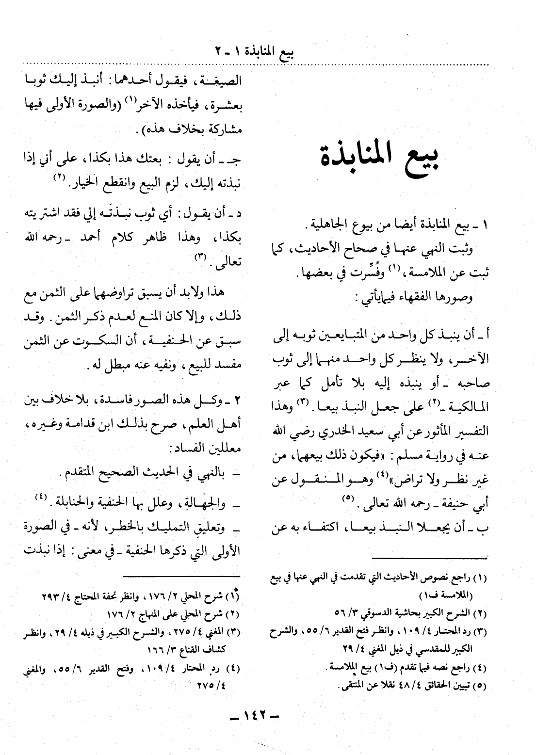 (4) راجع نصه فيما تقدم (ف 1) بيع الملامسة.