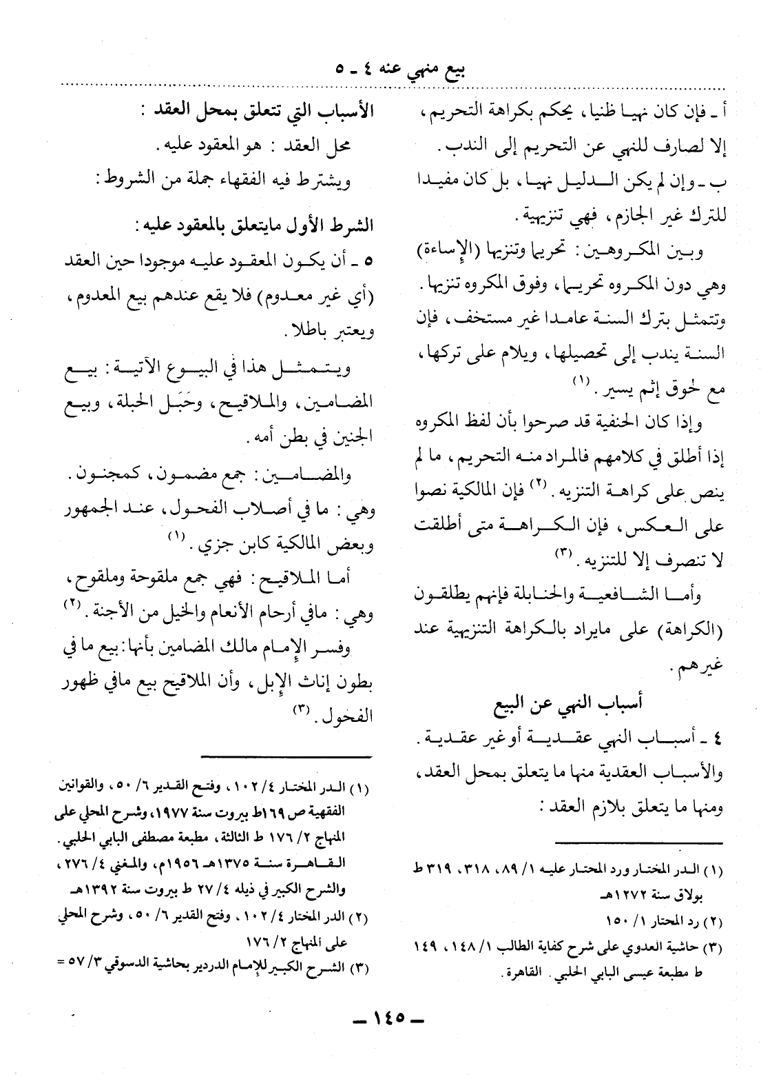 4 - أَسْبَابُ النَّهْيِ عَقْدِيَّةٌ أَوْ غَيْرُ عَقْدِيَّةٍ. وَالأَْسْبَابُ الْعَقْدِيَّةُ مِنْهَا مَا يَتَعَلَّقُ بِمَحَل الْعَقْدِ، وَمِنْهَا مَا يَتَعَلَّقُ بِلاَزِمِ الْعَقْدِ: