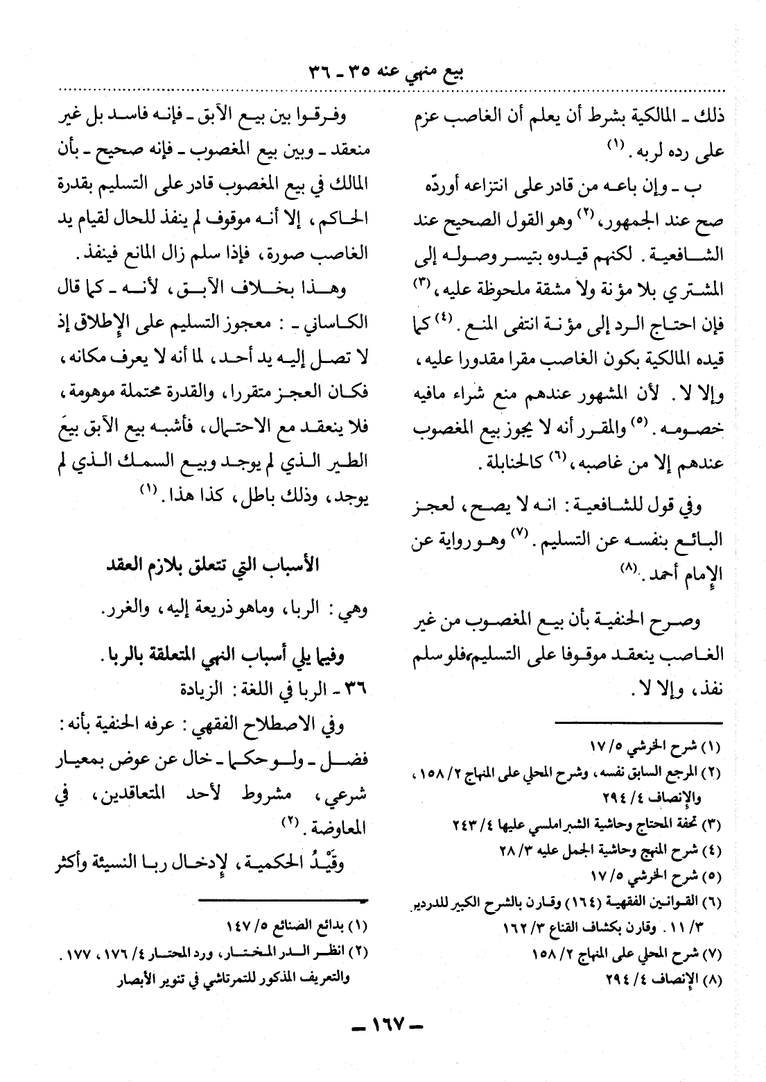 (6) القوانين الفقهية (164) وقارن بالشرح الكبير للدردير 3 / 11. وقارن بكشاف القناع 3 / 162.