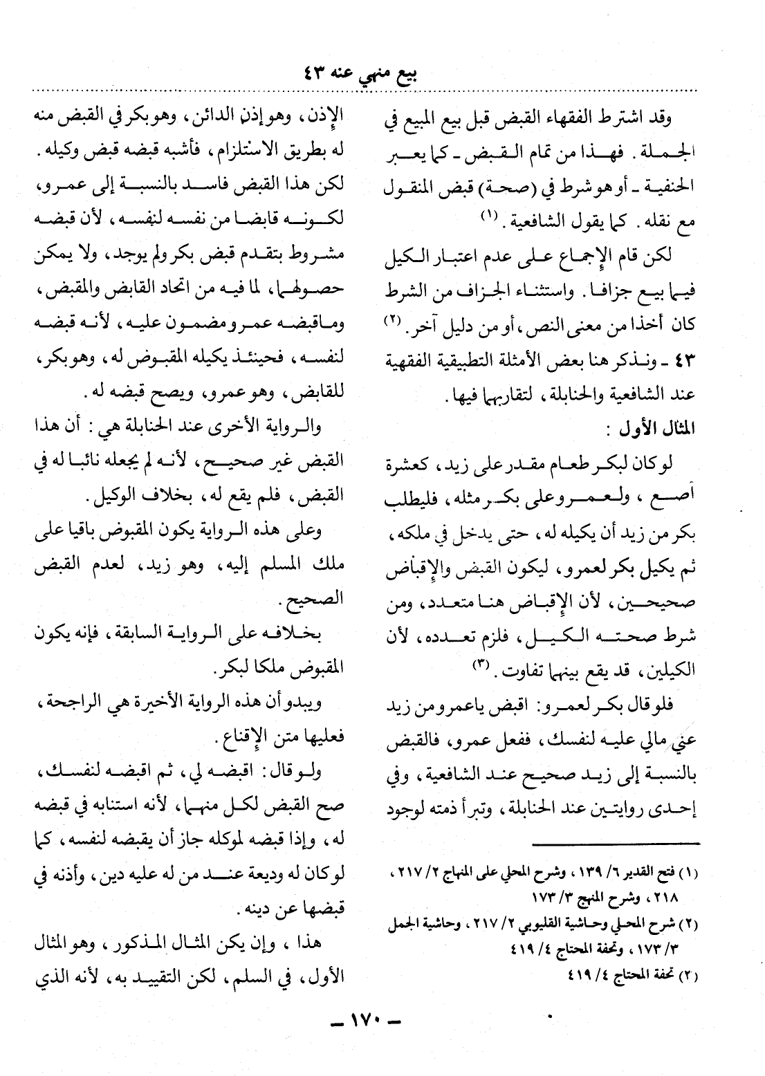 43 - وَنَذْكُرُ هُنَا بَعْضَ الأَْمْثِلَةِ التَّطْبِيقِيَّةِ الْفِقْهِيَّةِ عِنْدَ الشَّافِعِيَّةِ وَالْحَنَابِلَةِ، لِتَقَارُبِهِمَا فِيهَا.