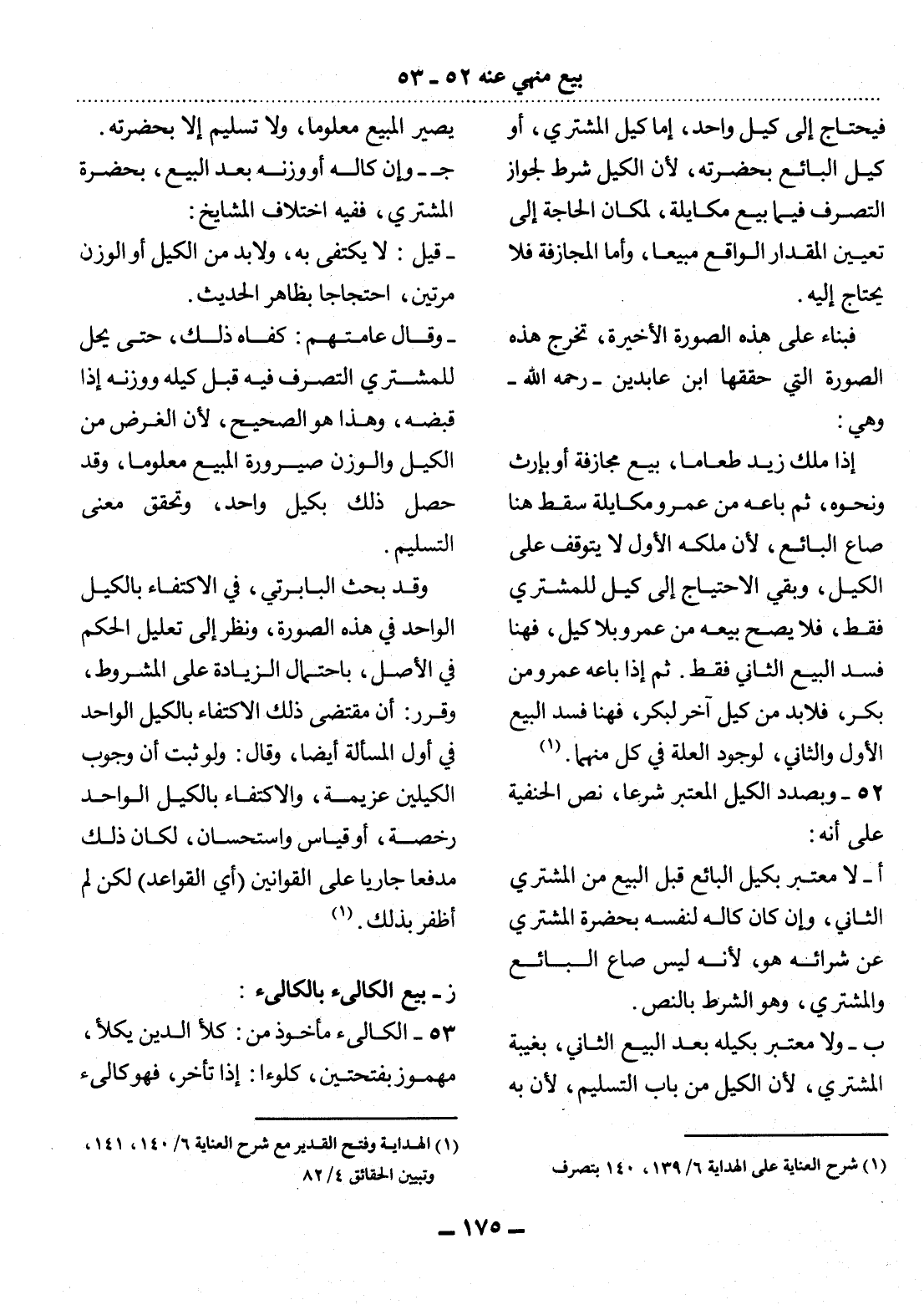 52 - وَبِصَدَدِ الْكَيْل الْمُعْتَبَرِ شَرْعًا، نَصَّ الْحَنَفِيَّةُ عَلَى أَنَّهُ: