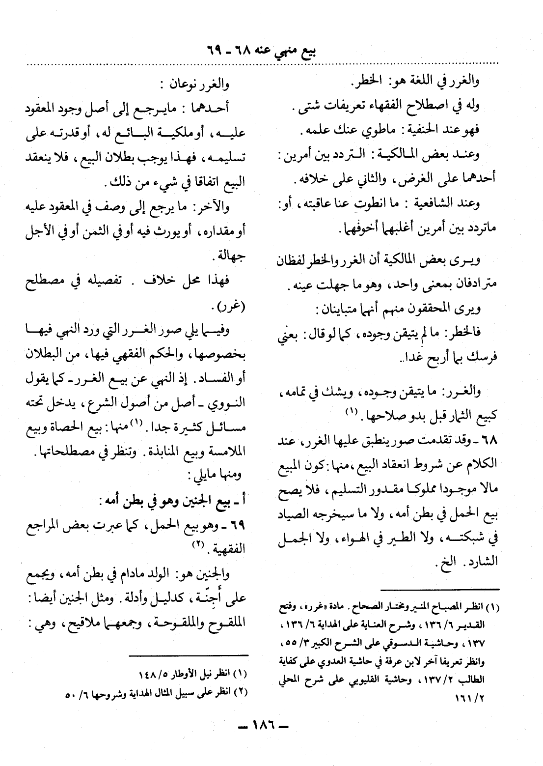 (1) انظر المصباح المنير ومختار الصحاح، مادة " غرر "، وفتح القدير 6 / 136، وشرح العناية على الهداية 6 / 136، 137، وحاشية الدسوقي على الشرح الكبير 3 / 55، وانظر تعريفا آخر لابن عرفة في حاشية العدوي على كفاية الطالب 2 / 137، وحاشية القليوبي على شرح المحلي 2 / 161