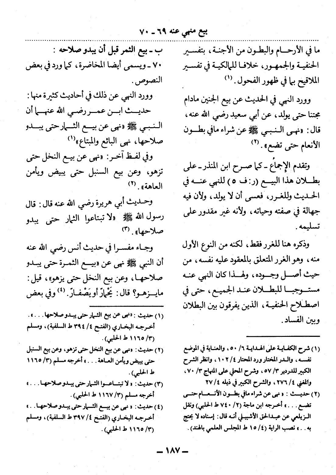 (4) حديث: " نهى عن بيع الثمار حتى يبدو صلاحها. . . " أخرجه البخاري (الفتح 4 / 397 ط السلفية) ، ومسلم (3 / 1165 ط الحلبي)