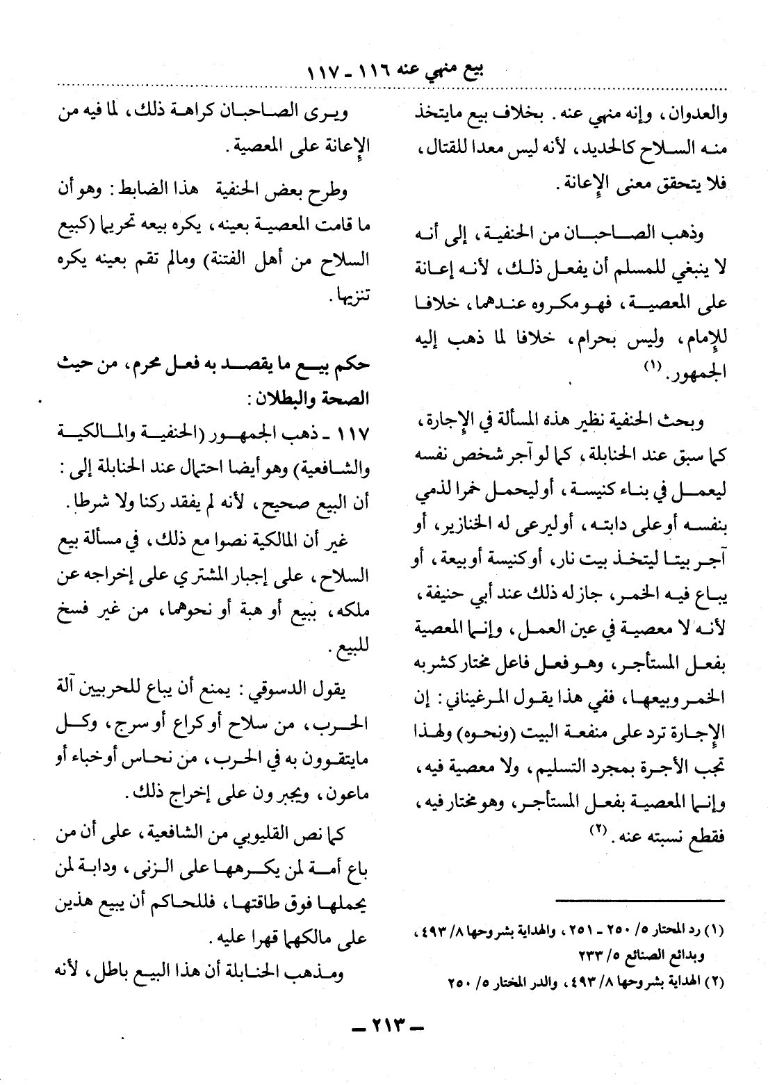 (1) رد المحتار 5 / 250 - 251، والهداية بشروحها 8 / 493، وبدائع الصنائع 5 / 233.